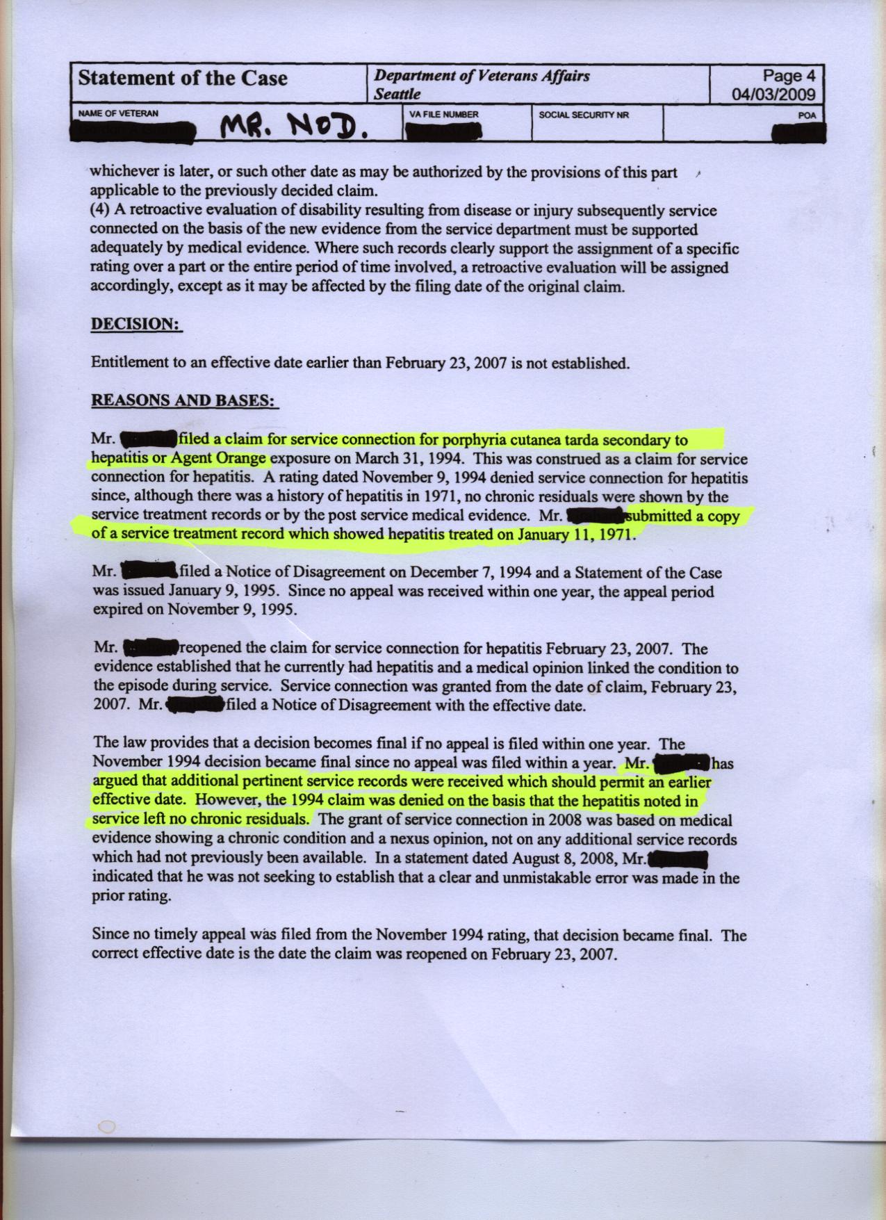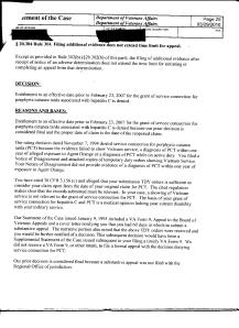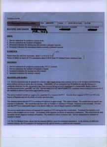 I refiled in 07 and won in 08. I filed for the 1994 date in my 2008 NOD and the 09 SOC (DRO review, no less) shows the revised post hoc rationalization (4). All of a sudden, records sent in with the 12/94 NOD are moved to appear to have been sent in with the 3/ 94 claim. Now the rationale for the 11/94 denial shifts to”However, the 1994 claim was denied on the basis that the hepatitis noted in service left no chronic residuals”. No mention of “history” or “treatment” now. The reader will notice that the PCT issue is no longer associated with the hepatitis as in “residuals of hepatitis”. It has been sidelined and thrown out as in “you were never in Vietnam, Mr. Nod.”. Bingo. No more residuals. As usual, my good buddy at the VSO never mentioned getting a nexus from the skin specialist who identified it (the PCT). Actually, that nexus requirement didn’t become mandatory until a year later in the Caluza v. Brown decision. All in all, VA did a bang up job of rearranging the furniture and moving the documents around to fit the picture. Police call this staging a crime scene. VA calls it a probative analysis of the available information. One little problem. When you submit new documents, they have to redo the decision from scratch [38 CFR 3.156(b)]. Absent a do over, the Vet cannot file his appeal (Form 9). That is why they said “we will notify you as soon as our decision is reached”. There’s no regulation that says you have to file the F-9 to get a do over. The DRO danced around the fact that they never called me back. That’s where it sat for 14 years. Now, ladies and gentlemen-watch closely. The typewriter is faster than the eye. Approximately a year later on the PCT DRO review, they finally address that pesky #4 document. This time VA opts for a novel PHR (#5) “The narrative portion also noted that the above TDY orders were received and that you would be further notified of a decision. This subsequent decision would have been a SSOC issued subsequent to your filing a timely VA Form 9.” No mention of the simultaneous submission of the off road hep. medrecs. Just a failure to submit the F-9 in order to receive my SSOC denial. VA eats 38 CFR for breakfast every morning and they damn sure don’t cotton to the idea of having to pay a shitton of bucks out for their screwup. It’s easier to employ the PHR technique and reconstruct history to comport with a “revised” version. Since the new PHR version reveals I never appealed, the claim is DOA. Pretty fancy footwork, huh? These guys would be naturals for Dancing with the Stars.