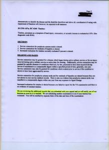 Attached is a post hoc rationalization made 14 years after a denial. On the blue-hoo sheet (#1) it states”The service record shows history of treatment for hepatitis in 1971 during his duty in Indochina.Treatment for hepatitis is not shown in the available service record.” This puzzled me for a while until I remembered some of my military career was spent working for AirAm. That was where I was when I came down with hep. My military SMRs have no record of it. I mentioned it in my separation exam and that is the “history of treatment” they mention. Since I had a copy of my off road medical records, I sent one in (#2). And since they said I wasn’t in Vietnam, I also sent them a copy of TDY orders showing I was. I got an SOC in January of 95 (3) that said “Roger on the records. We’ll get back to you.” Like a jilted lover, I waited, but that was the last I heard.