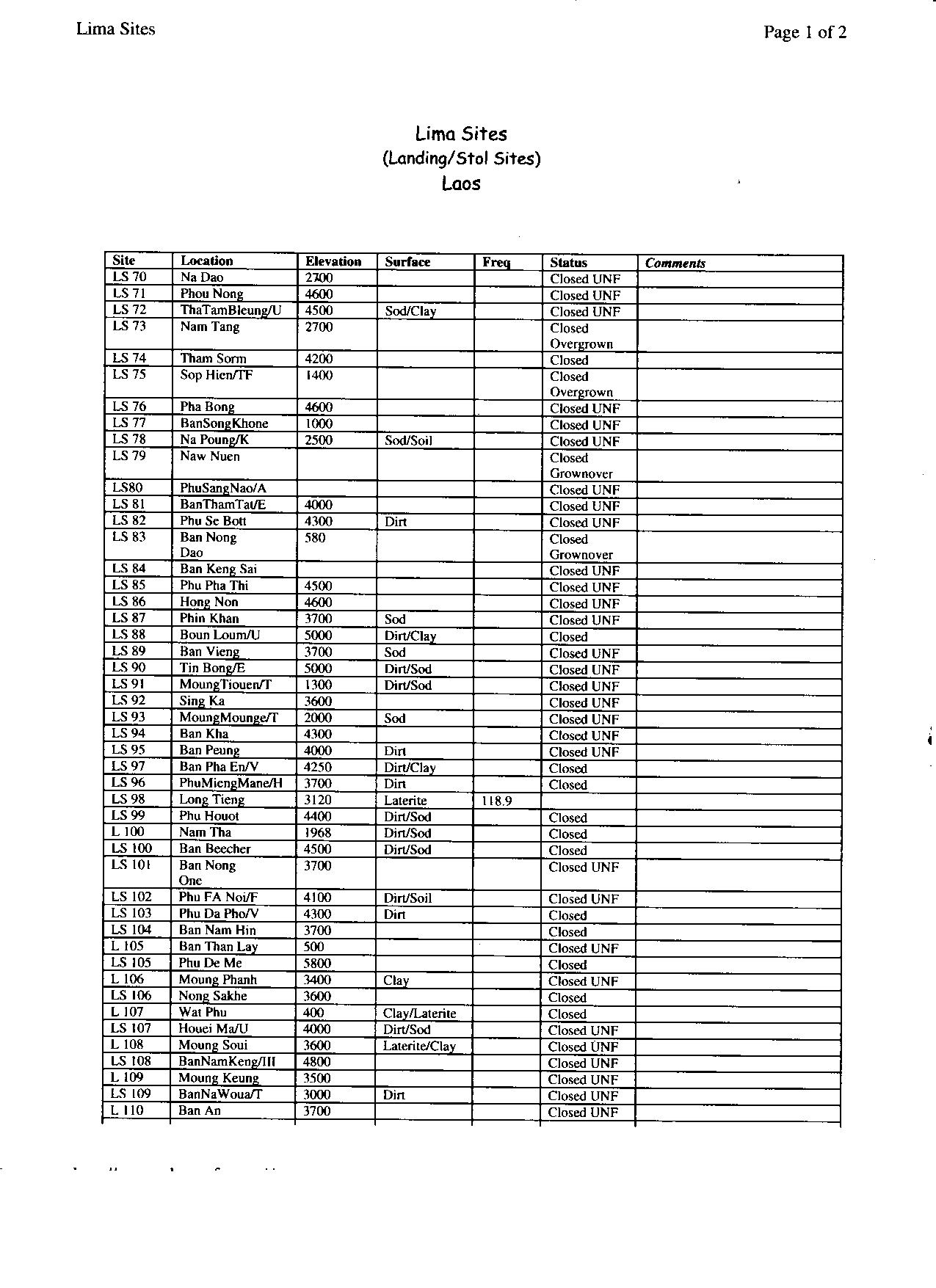 Lima Site 20 Alpha-Long Tieng. This was home from 7/70 to 11/70. We called the Karst limestone hills at the end of the runway the titty karsts. We also referred to them as the vertical speed breaks. Runway was Laterite 1100 feet. 3120 ASL, Approach and Departure freq. was 119.1 mhz. The only major base with a unidirectional runway. A C-123 hit it in 69. The reason you don’t see any weeds around the runway is because the Hmong children used bleach bottle scoops and poured AO undiluted all over the approach and the parking aprons. That would explain why I have PCT. I bet there’s still nothing growing there. I’d also bet every one of those kids are dead, too.