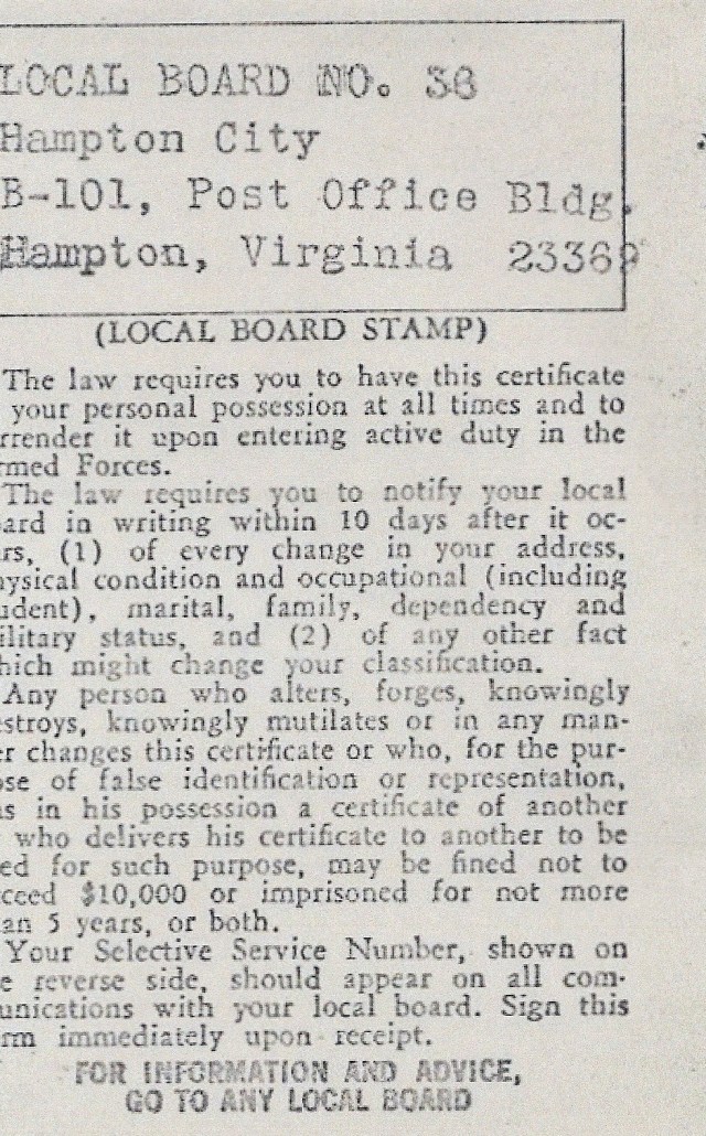 I guess it’s never too late to burn your draft card-assuming you still have one. I found this at the bottom of the box under the General Discharge (under honorable conditions). My guess is they don’t issue these anymore. I had another one that said 1A on it but I think I had to turn that in at the AFEES place when I signed the magic paper. It’s hard to remember what I was doing 42 years ago.