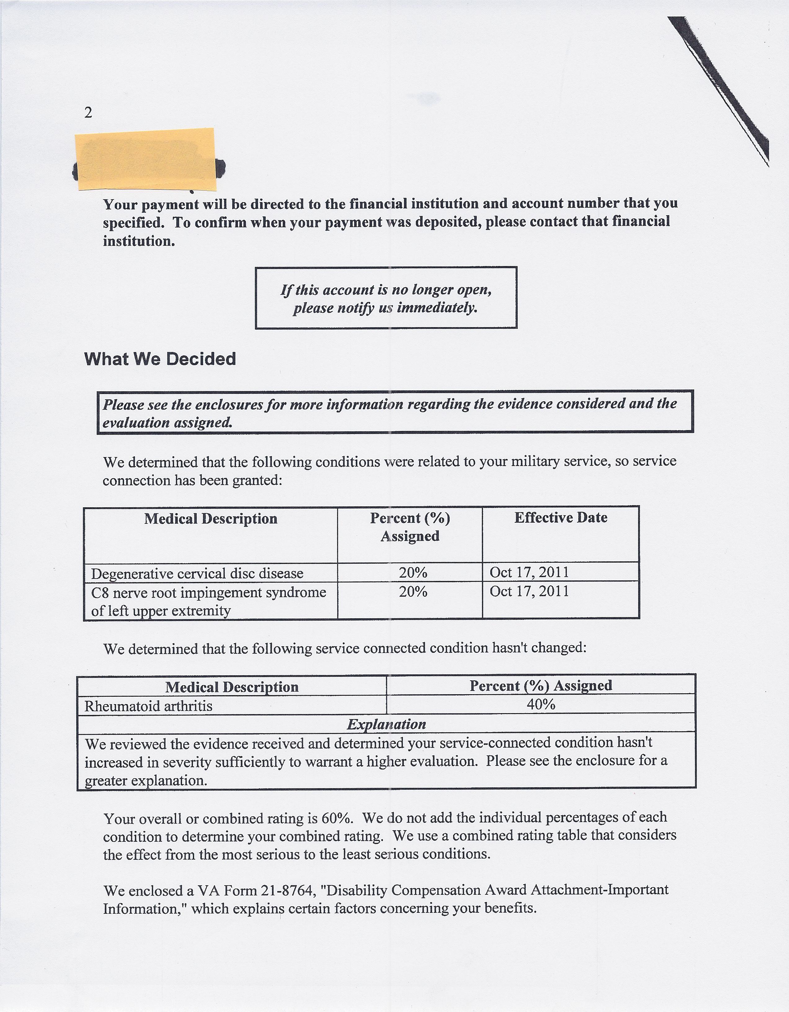 Well, what do we have here? Sound familiar? You notice right off the bat they aren’t volunteering what Diagnostic Code they’re using so that Squid could even know what 60% entails. I’m going out on a limb and guess they’re using the same formulary as the hepatitis progression-i.e. 60% for incapacitating episodes having a total duration of six weeks or more but not near constant. And voilá. Done: