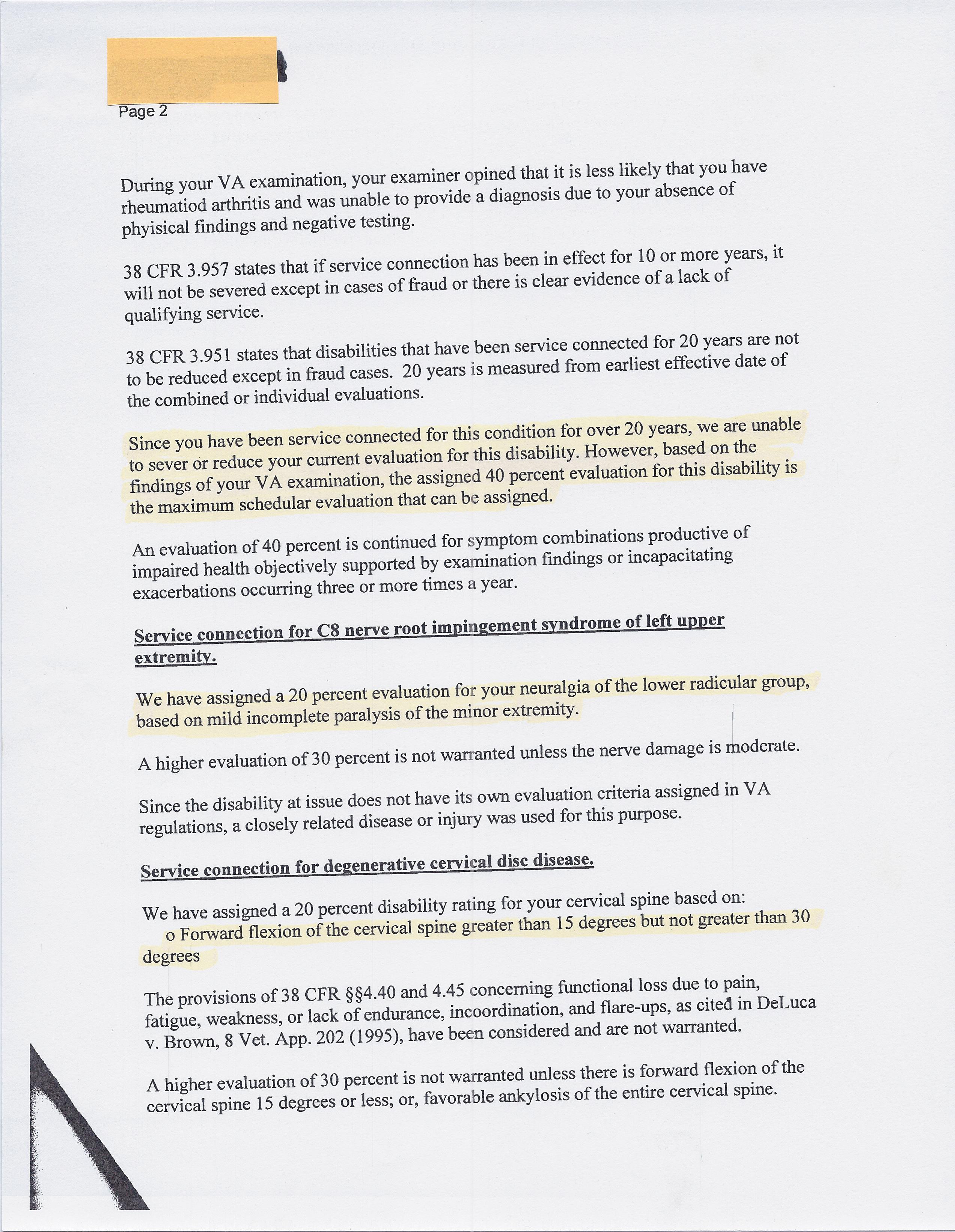 In sum, Squidly stands a good chance of maxing out at 40(protected and max) 3o for the root (max)and 60 (max)for the cervical disc deal. He could get IU but he’ll never see 100% for it. Oddly, there is no discussion of these limitations. You, like me and Squid, are left to search Part 4 and see if we can adduce what it is they are ouijing with.
