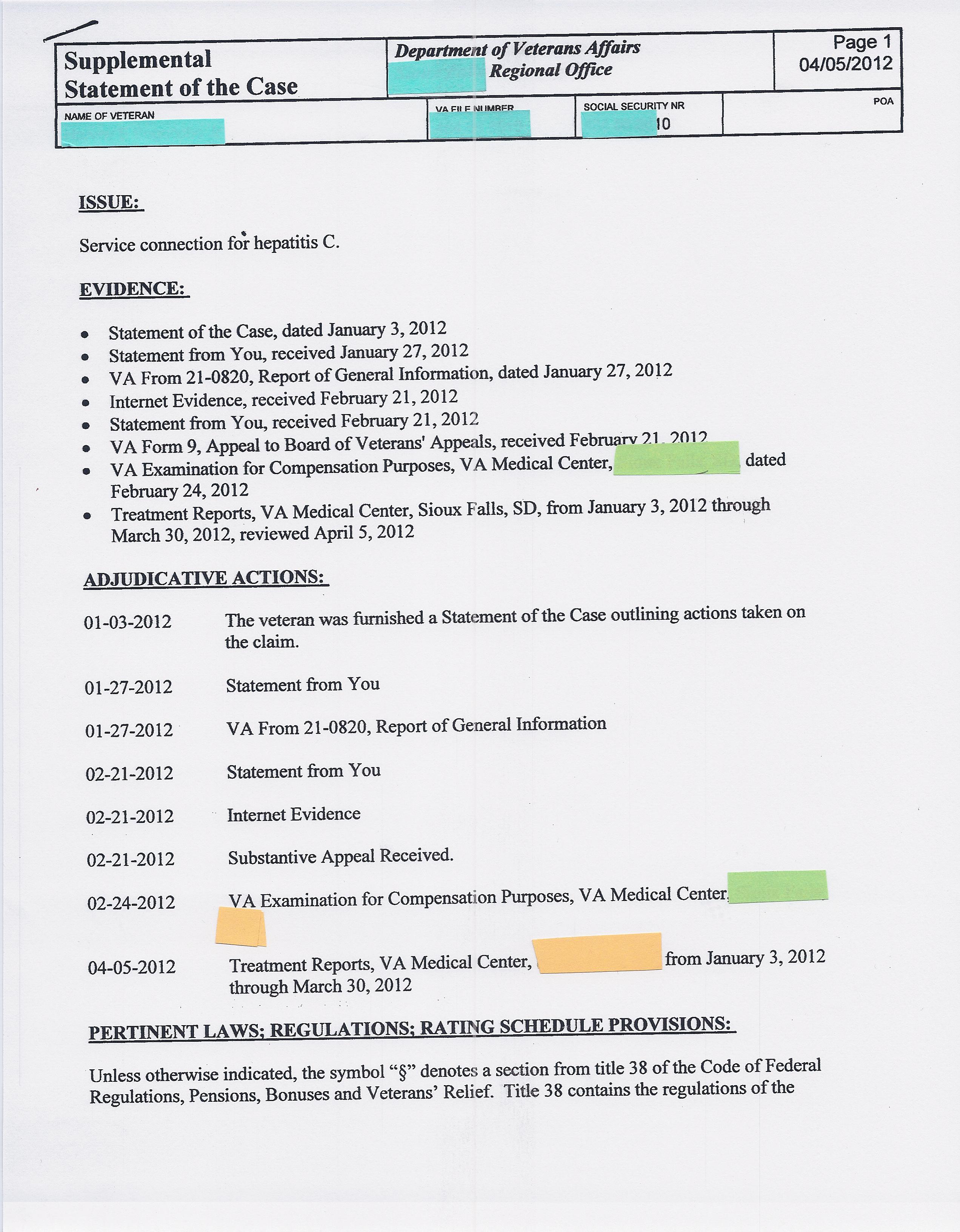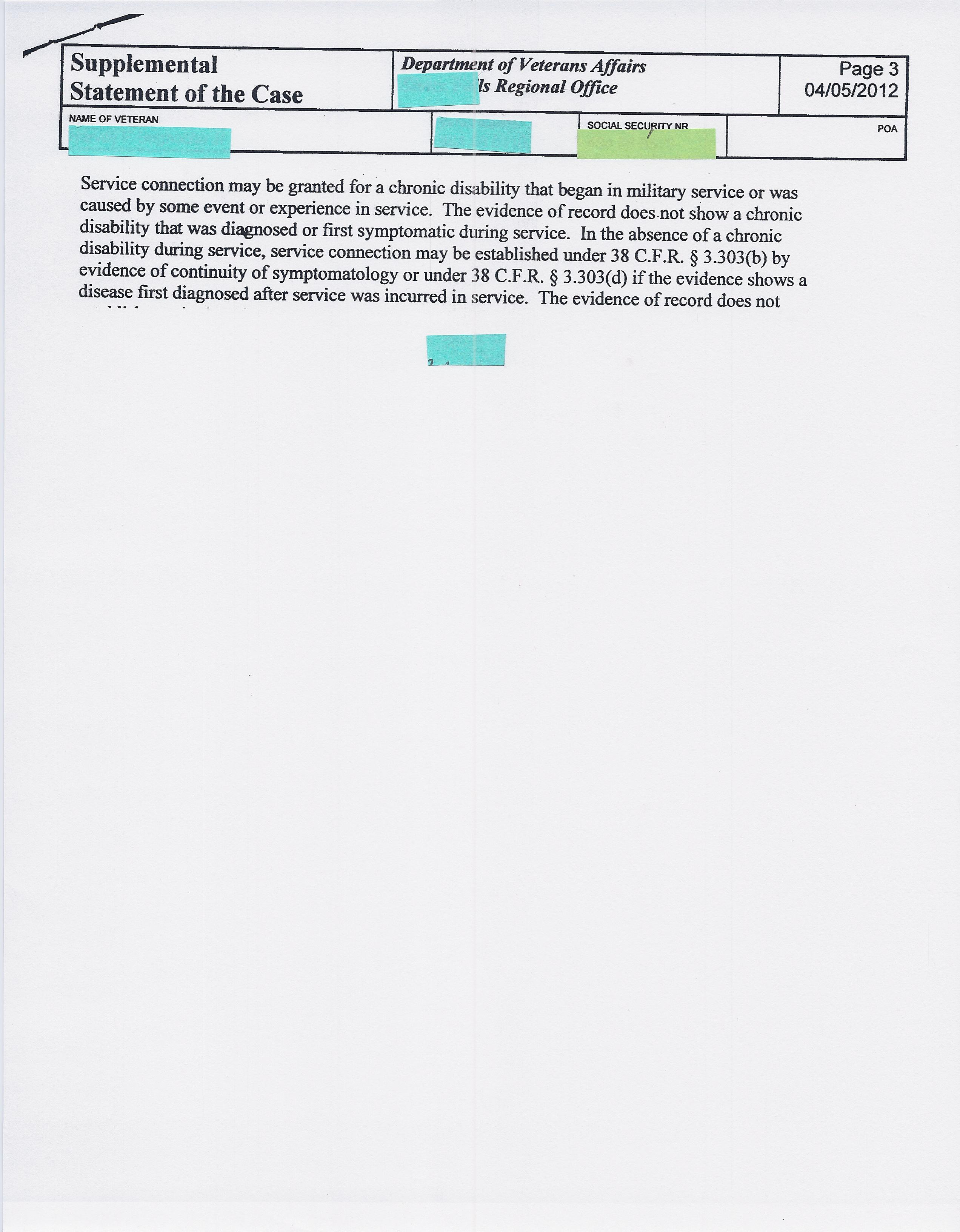 Here’s Squidly’s Supplemental Statement Of the Case (SSOC). I often refer to these as the “What part of No don’t you understand (part 2)”? Part 1 is the SOC.  Had he gone through a DRO review, he’d have seen this in April- April 2013 that is.