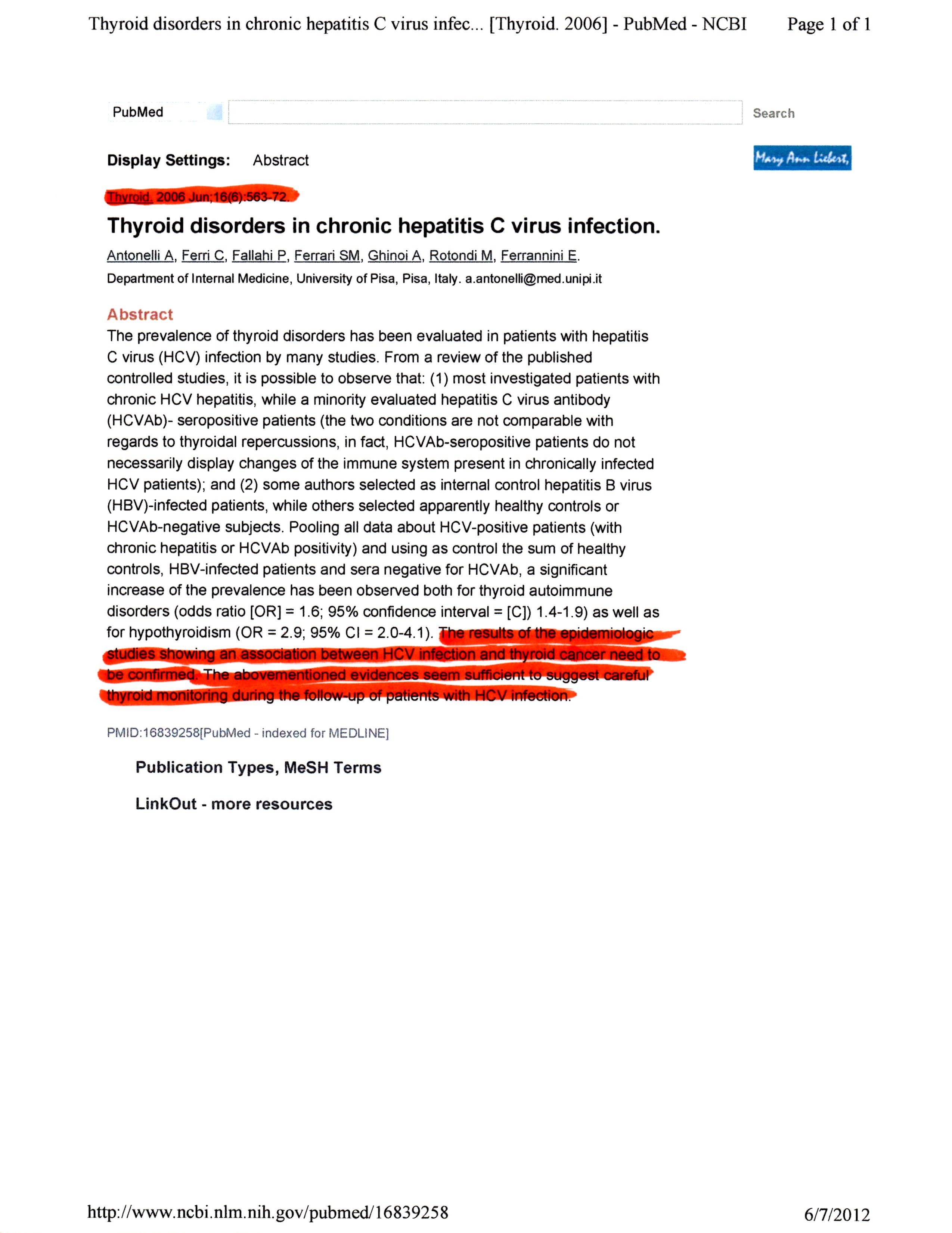I am the Robert in So Cal who is mentioned regarding this article. Well done research. I am surprised Lloyd Wrights site isn’t searched as well. I am sure NOD has dealt with him before. Lloyd got busted for something a few years back. I still visit but the negativity there is a downer. The horror stories of IFN therapy is endless. So why doesn’t the VA recognize the reams of data regarding HCV exposures and their FDA approved IFN treatments? It’s all about money who in in the white house. I believe IFN treatment for my HCV caused my thyroid cancer. I also believe that IFN caused cysts/tumors on my liver and testicles. My exposures to HCV is military related and I will probably die from it. Producing this good information will not convince any RO rater of your arguments. Without a good nexus we will sit and spin for years. However I use information like this to deal with my doctors and make my suggestions. NOD opened my eyes to PCT and now I know why I burn in direct sunlight. Did any of my doctors volunteer this info? NFW but knowledge is power. I will fight this until my last breath. Without the help I get here I would be at the mercy of idiot lawyers and corrupt VSO’s.