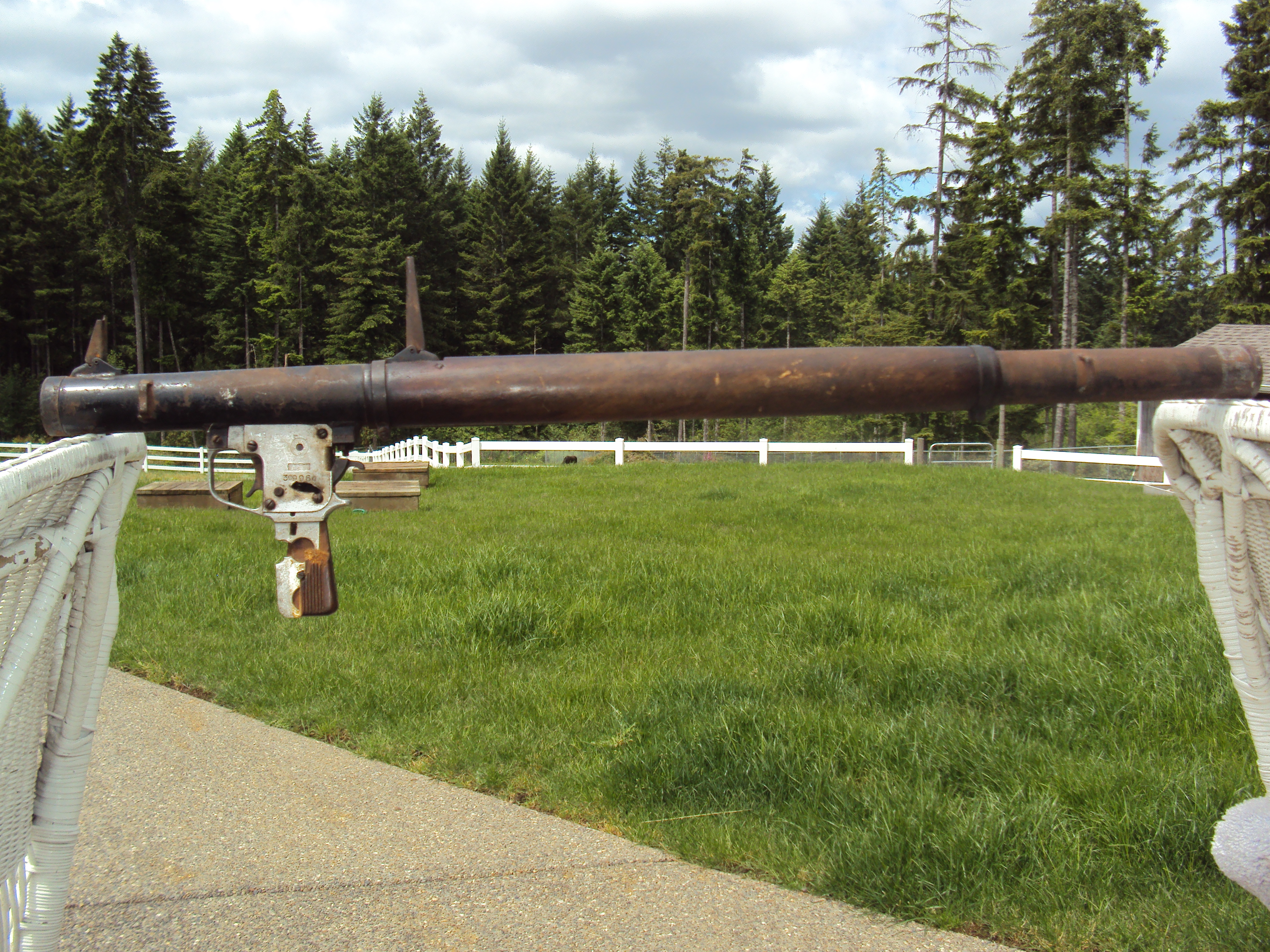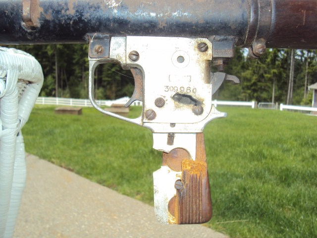 Notice the rich mahogany furniture on the barrel and what’s left of the handgrip.