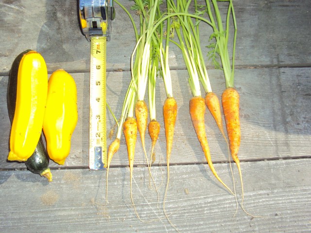 Now you are on your way to sanity. First, it takes three or four zuchinni or yellows to even make a meal for two instead of chewing on the same one for 3 days. Similarly with carrots, you can cut back to about twice a week because you’ll run out of carrots early doing this. The best part is the guys at the food bank will start talking to you again.
