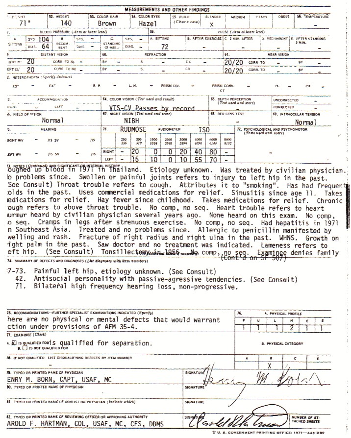 That’s funny. Nobody knew about Agent Orange in 1973. The doctor suggested I smoked too much. I sure didn’t. That would be the “civilian doctor” Air America employed.
