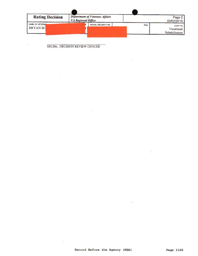 What will interest readers is what happens all too frequently at Regional Offices across America when paper files are involved. Yep. Your shit ends up in another Vet’s file and vice-versa. Thus it came as no surprise to find Brian M. __________’s information co-located where it will never be found- in mine.