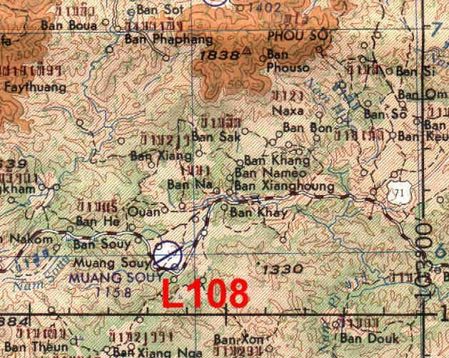 Muang Souy was one of those places that traded hands between us (the Hmong led by Gen. Vang Pao) and the Pathet Lao frequently. We owned it during the Monsoon and they promptly took it back in the dry, burning season. It was up at the top NW corner of the Plain of Jars adjacent to Interstate 7 (or what passed for it) in rural Laos. This was the main east/west thoroughfare for all the gooks’ military traffic and a terrific place to blow things up. Here’s another view.