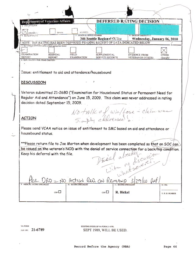 “Since we’re gonna deny Mr. Nod anyway, let’s save old growth trees and include the denial on the A&A/Housebound with the NOD on his hips. That way we can get both issues on the SOC. We can shine him on ’til June if he’s still alive. But just in case, keep his deferral with the C-file; if we get another congressional inquiry and they ask what the status is and why the hell the long delay, we have to have it in there.