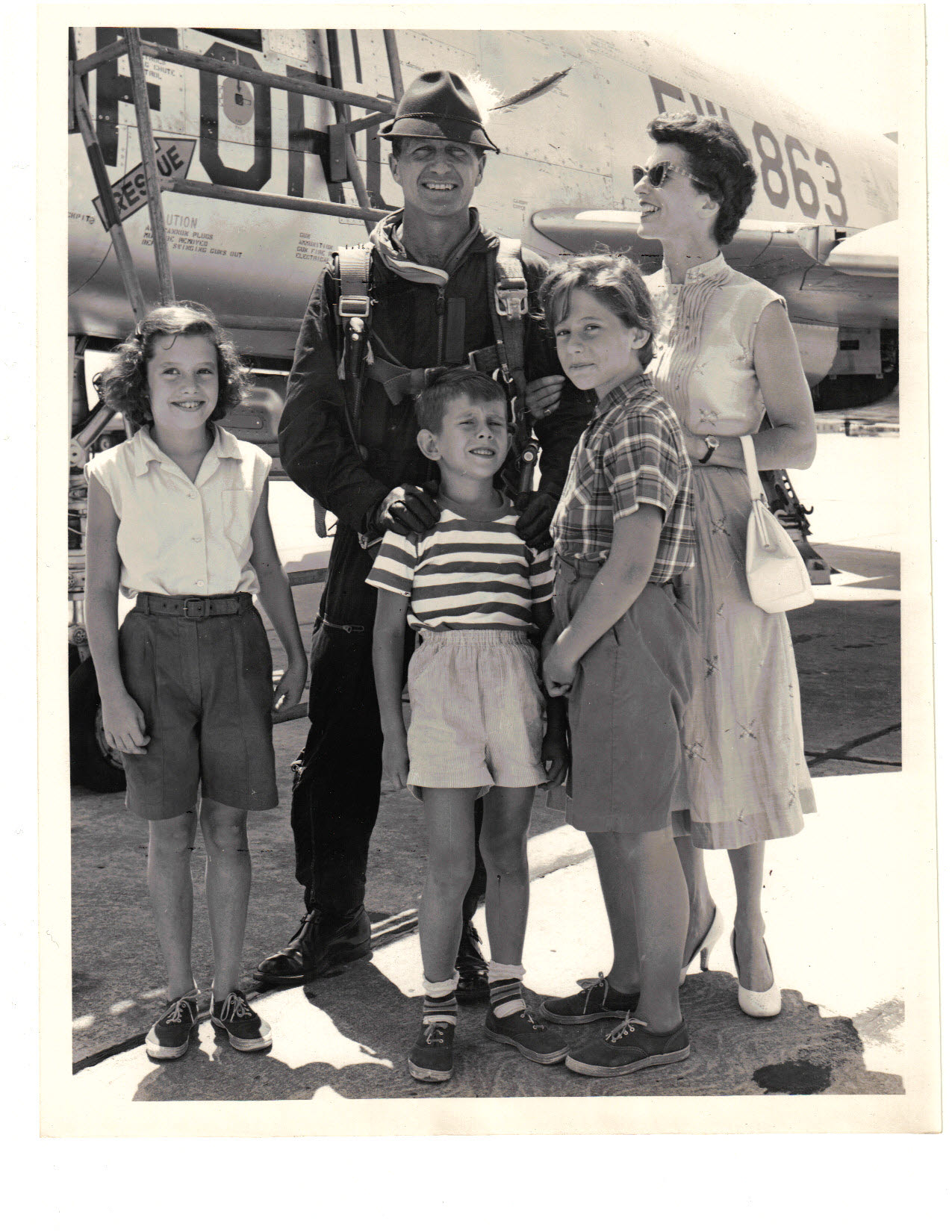 This was my family in 1957 at Turner AFB. That’s an F-100D Tail #FW 863 of the 31st Fighter Wing just arrived from the William Tell fighter meet at Nellis AFB, Nevada. 2nd Place.