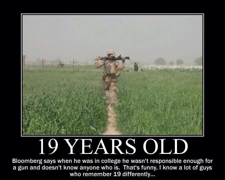 Gun? Hell, what about M-79’s, M-26s and (gasp) the old fully automatic (not 3 rd. burst) M16A1s. God forbid any of his buddies were responsible enough for a 60mm or 81 mortar. I guess Bloomberg didn’t hear the siren call of preserving America’s independence. Rich people suffer that illness.