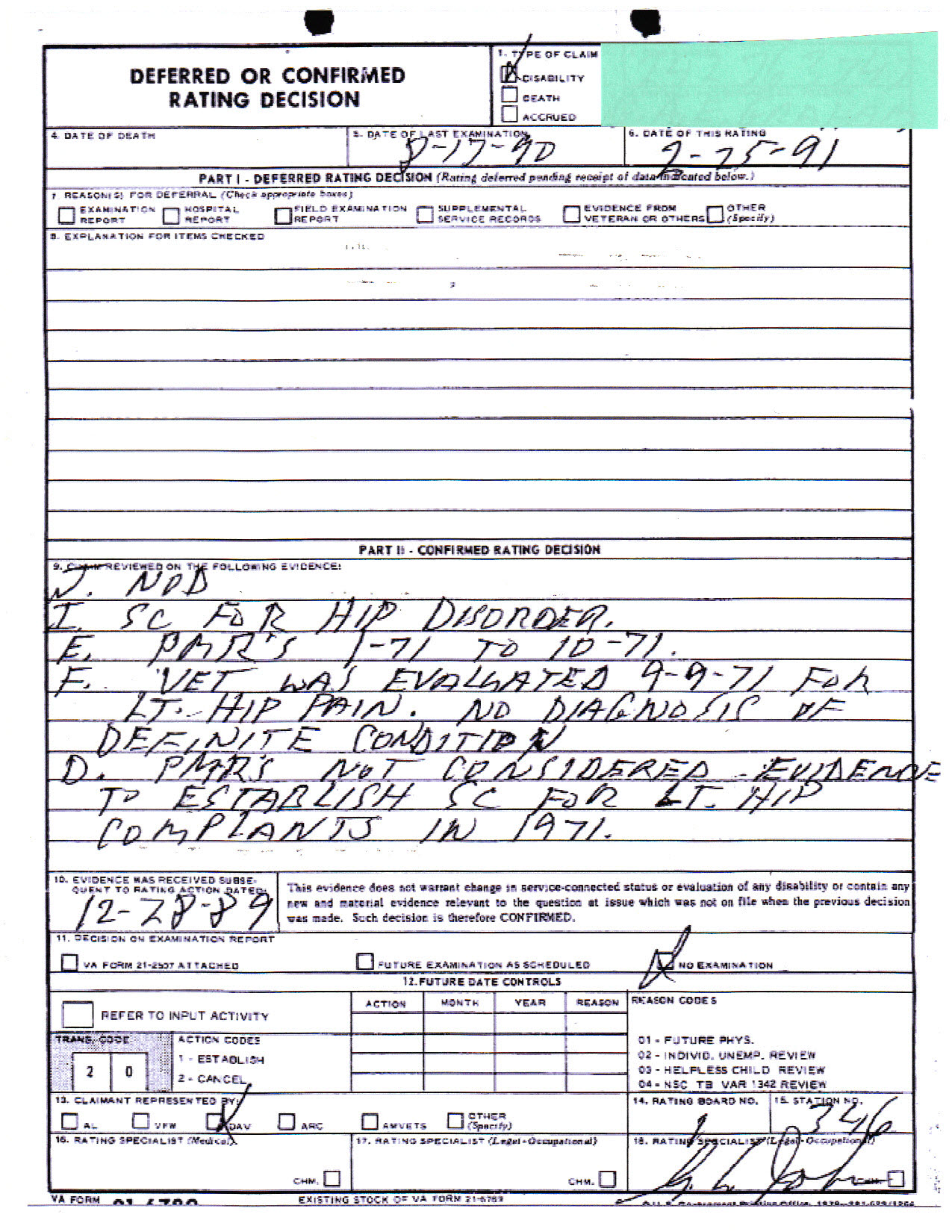 A week later a photocopy of one page came back showing my hepatitis (which I wasn’t claiming) and an X ray request for left hip dated 3 months after my injury(s). Here is where the VA made a clearly and unmistakably erroneous finding. These are rare because VA is usually careful not to leave incriminating evidence in your C-file. I received my very own copy in 2009 and the below wasn’t in there. Nevertheless, the Record Before the Agency, known as the RBA clearly reveals it. While digging through it page by page I spotted this and shared it with LawBob.