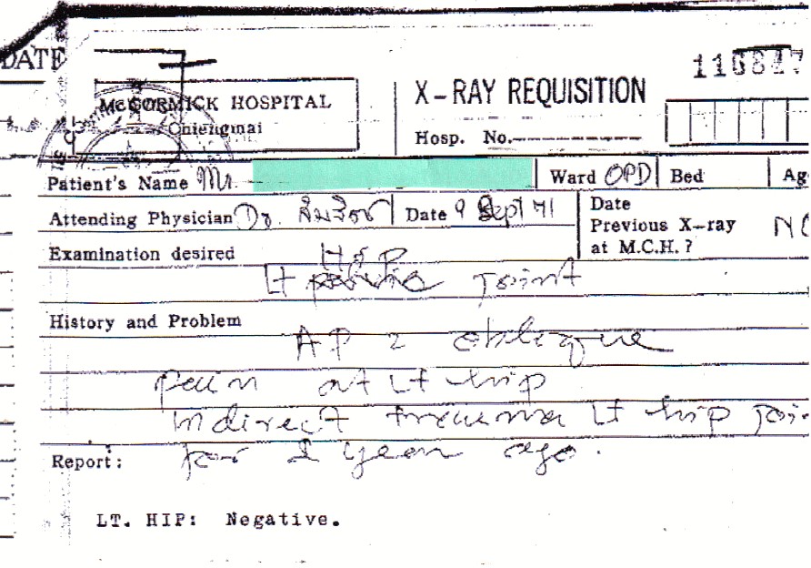 I got to see my SMRs for the first time (no copies for me) and there it was-or more precisely-wasn’t. No civilian hospital records of anything. I promptly submitted the address with my testimony and the transcriber dutifully noted it in the record. End of search. When they issued my Supplemental Statement of the case, they made no mention of the records- just a simple “Sorry, Nod but we cannot grant.” Obviously they had made no effort to assist in finding these records. I immediately contacted the hospital half way around the world in northwest Thailand person to person for $135.00 and in my best Thai asked for my records.