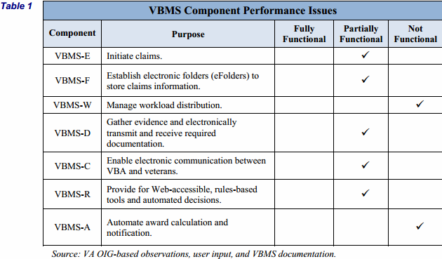 F’ing kidding me??? From the audit… “the system had not been fully developed to the extent that its capability to process claims from initial application through review, rating, award, to benefits delivery could be sufficiently evaluated…” …”We identified issues hindering VBA’s efforts to convert hard-copy claims to electronic format for processing within VBMS, including disorganized electronic claims folders and improper management of hard-copy claims.”