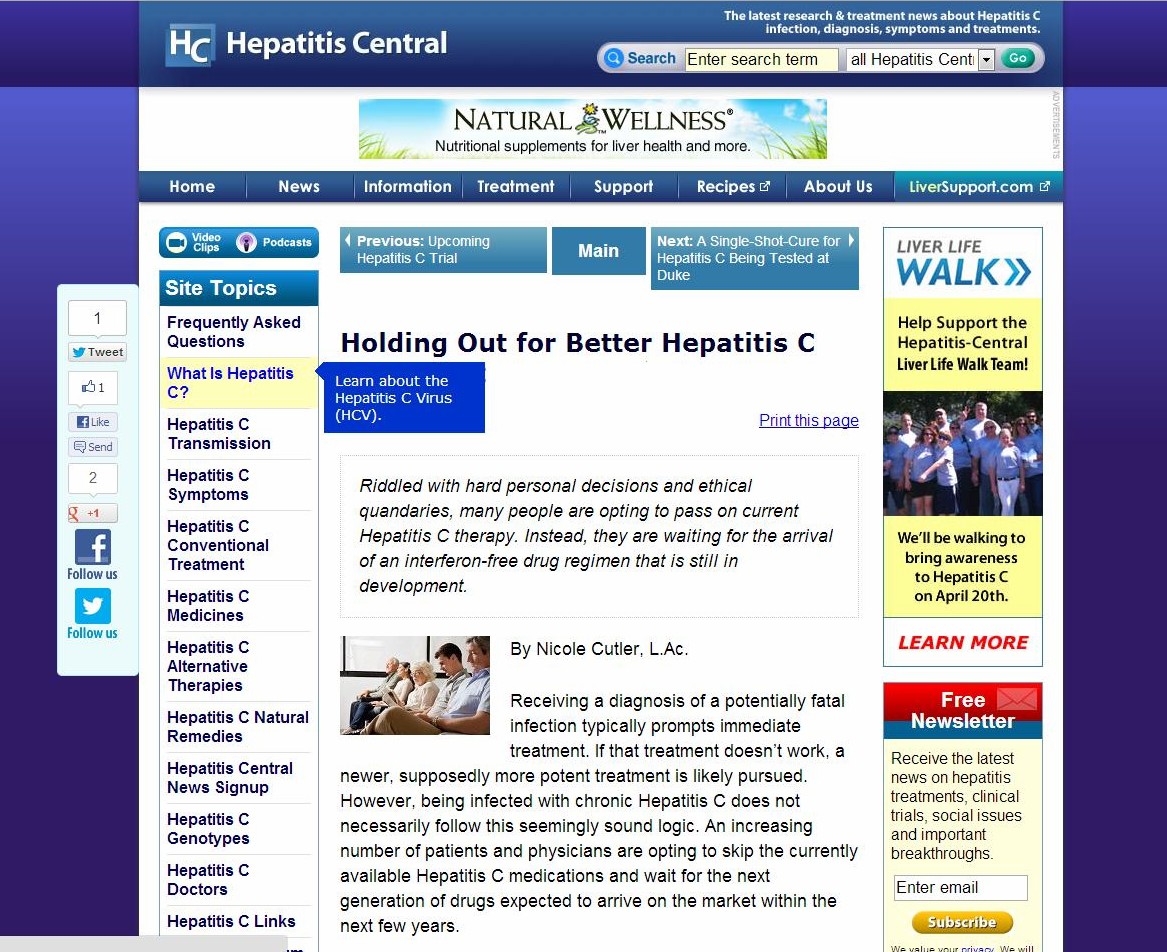 This is a wonderful piece of information by Nicole Cutler L. Ac from Hepatitis Central that confirms what we’ve been advocating here at Asknod. Why put yourself through a three-drug cocktail when just one (Interferon) will maim you for life? It’s like getting to wear a “I went over Niagara Falls in an innertube, Dude!” and being a mushroom sandwich after all the neurological damage. So much to tell- so little capability. This is way past a prefrontal lobotomy. Common sense demands a second look and a third opinion.