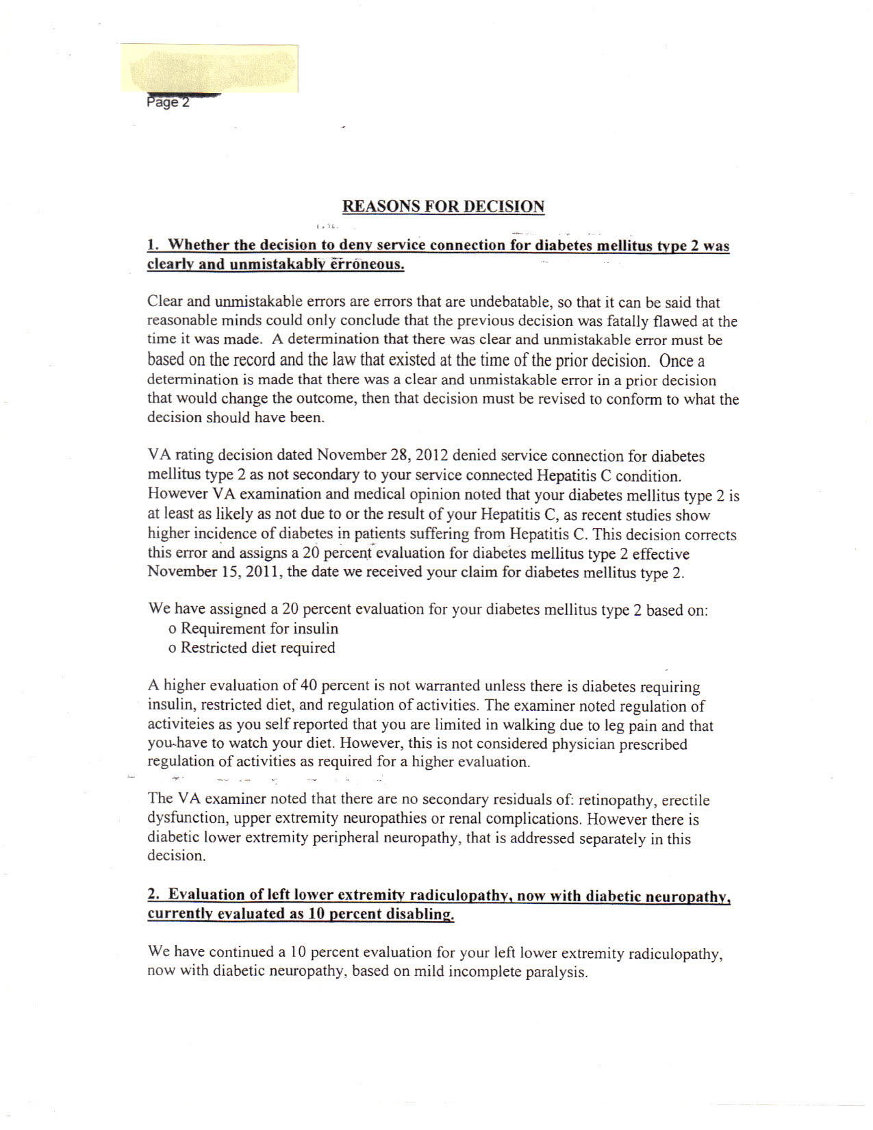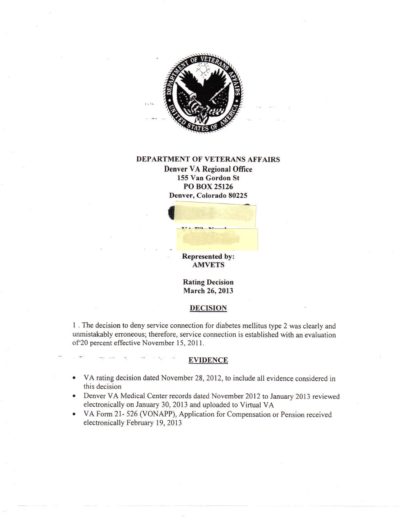Randy decided to go after them with the CUE stick based on his DM2 being related to his now service-connected HCV. Forget that VA has published its own literature that connects the two. Ignore that the correlation between the two is almost undebatable. Finally, make a stand and decide to pull a Custer and die on that hill. All to no avail as we see here. When faced with the inevitable, VA meekly retreated and granted that which should have been granted at the outset.