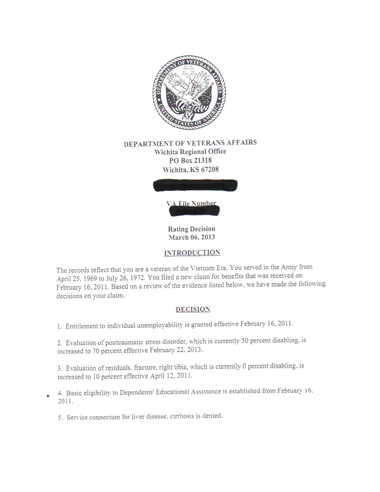Arkhick50, one of our fellow members (and fellow Vietnam Veteran) claims another win. Having mastered the art of “Win or Die”, it seems he has the Little Rock VARO teetering back on their heels. If you recall, he finally hit the jackpot back in September of 2012 at his RO without the dreaded appeal to DC. Following up on that with a carefully orchestrated attack, he was able to convert on Point After Touchdown and turn his 90% into a TDIU for 100%. This will be retroactive to his filing in March of 2011. All according to plan.
