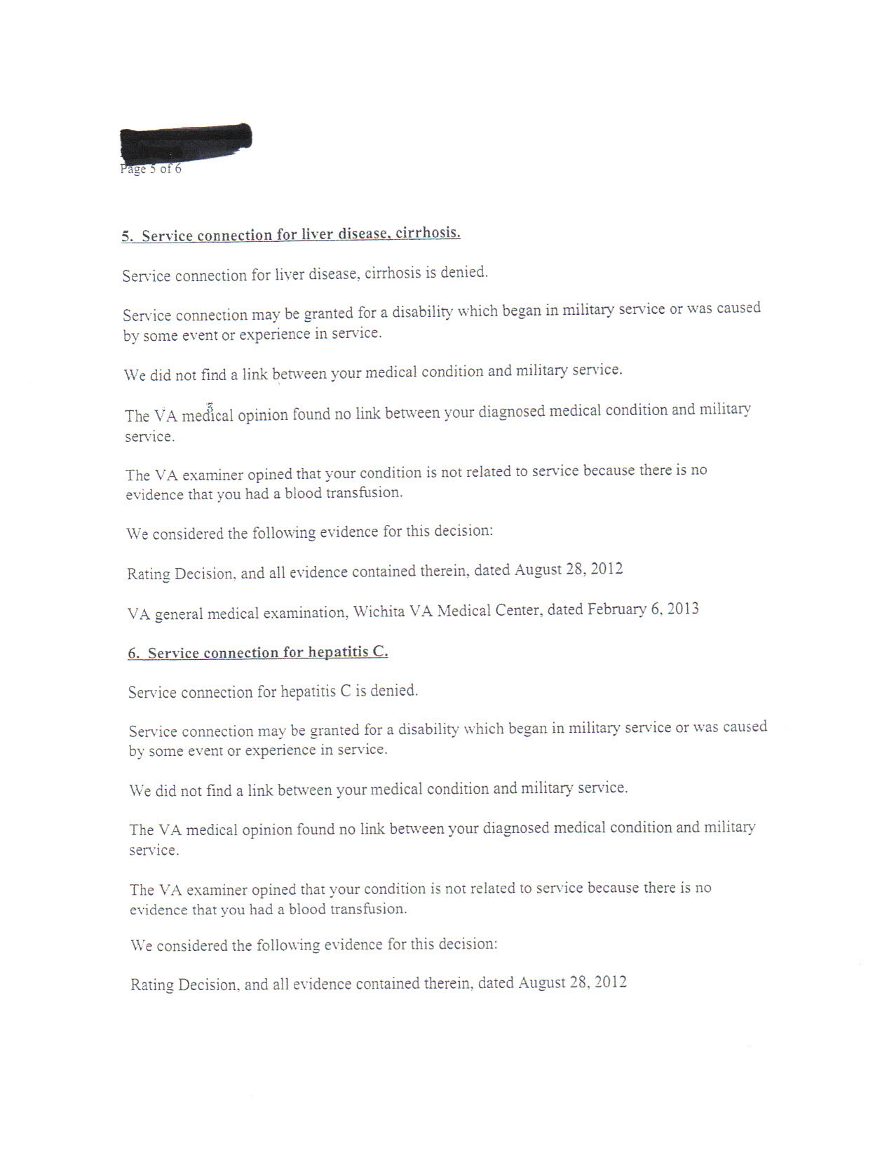 The VA has turned him down for his HCV claim which simply sets the stage for a later fight. A well-written letter by Dr. Cecil should be all that is necessary to produce a win in that column as well. Mr. Arkhick has two excellent risk factors of STD documented in service as well as a more than probable transfusion in the very last days of his enlistment following a severe automobile accident. Between the two, his chances are somewhere between good and great.