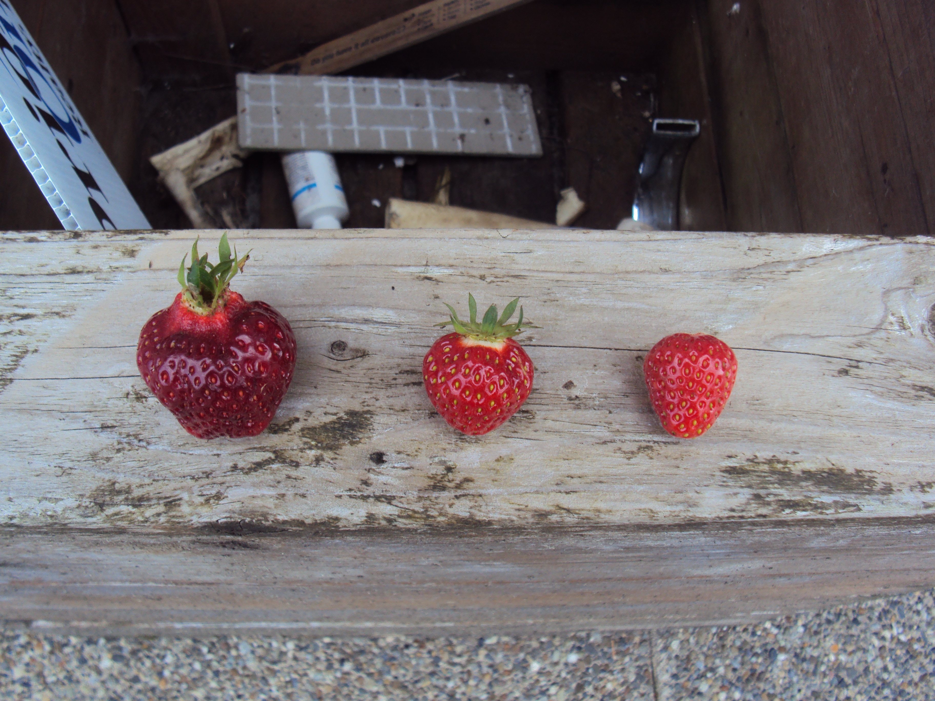 Cupcake went so far as to cull the last batch and illustrate what is passable and what is verboten.I had no idea women had such stringent strawberry rules- none whatsoever. When men pick berries, they get out the berry box. Pickin’ the berries, pickin’ the berries. No thought is given to size, abnormal shape or photogenic qualities. For men, the rule is red. It’s very cut and dried. They don’t taste good if they are green. It’s a very simple test. For women, the rules are far more intense and exacting. Not only do they have to be ripe, they have to be genetically perfect e.g. Fukushima-free. They cannot exhibit any evidence of being “partially sampled” nor can they have any of that grey fuzz on them. These rules are inviolate. I’ve caught Cupcake surreptitiously spot-checking my harvest technique when I come in following the misspoken nuclear humor . She’s about as subtle as a hand grenade.