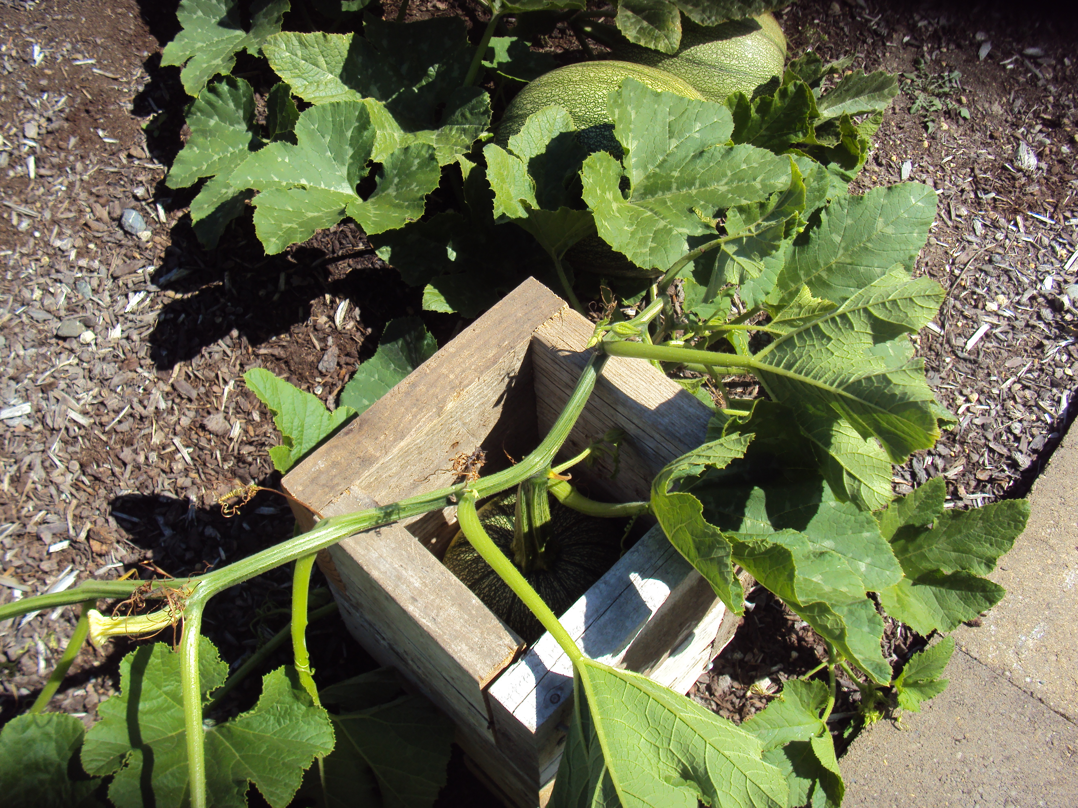 During the Stardust radio show last weekend, Rick regaled me with his new idea for a square pumpkin. Not to be outdone and figuring all of you on the Left Coast would like to have one in your back yard, I promptly constructed a receptacle for same.