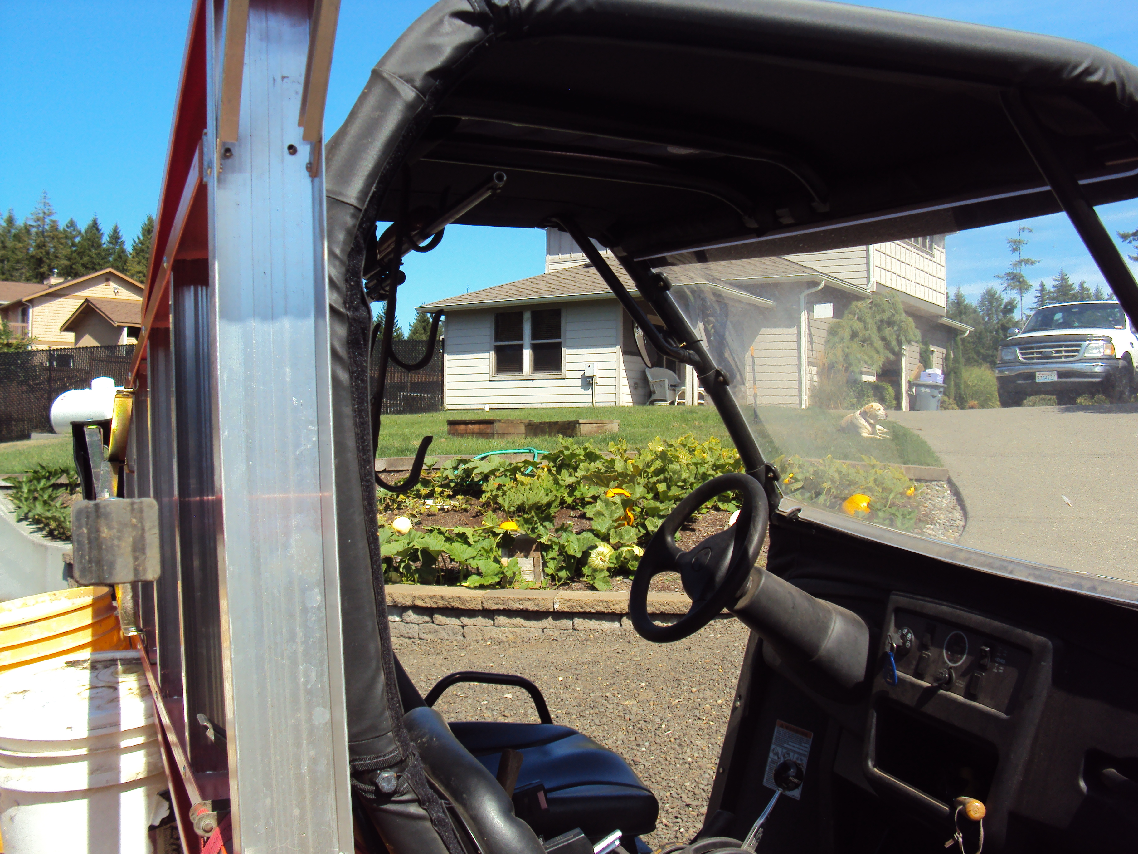 It wasn’t 48 hours later that the subject pumpkin drafted for this endeavour exceeded its parameters and became wedged in the new constrictive environment. A quick check this morning confirms Rick’s observation. My grandson Hayden is going to have a very unique pumpkin this fall.