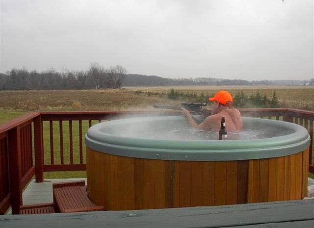 That’s right. For the Vet who has everything. These guys are so hard to shop for. New.338 Win. Mag w/ 4X9 Redfield tube? Got a nice semi two years ago. Electric Heated boots by Tesla? Been there. Got ’em. Four-wheeler swamp buggy/duck boat? Bought it custom. Heated deer blind with kegtap/beerholders and patented Hydroswirl® Jets every six inches? I don’t think so.