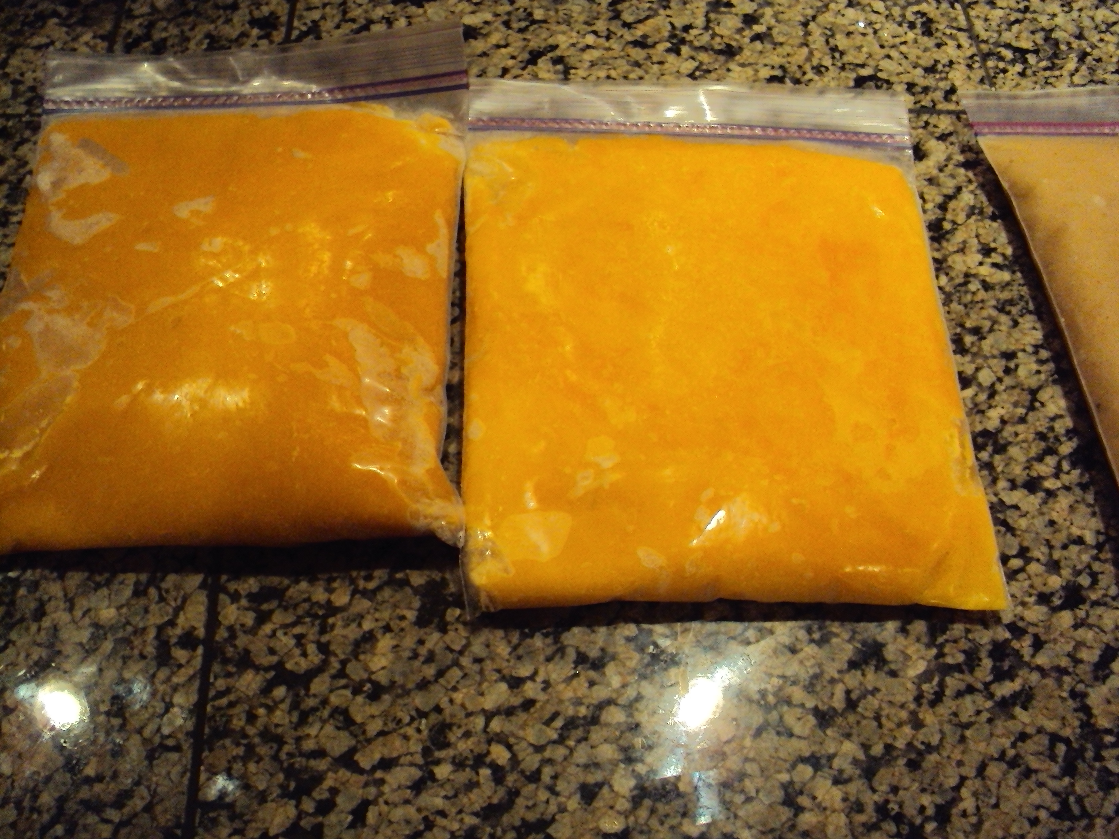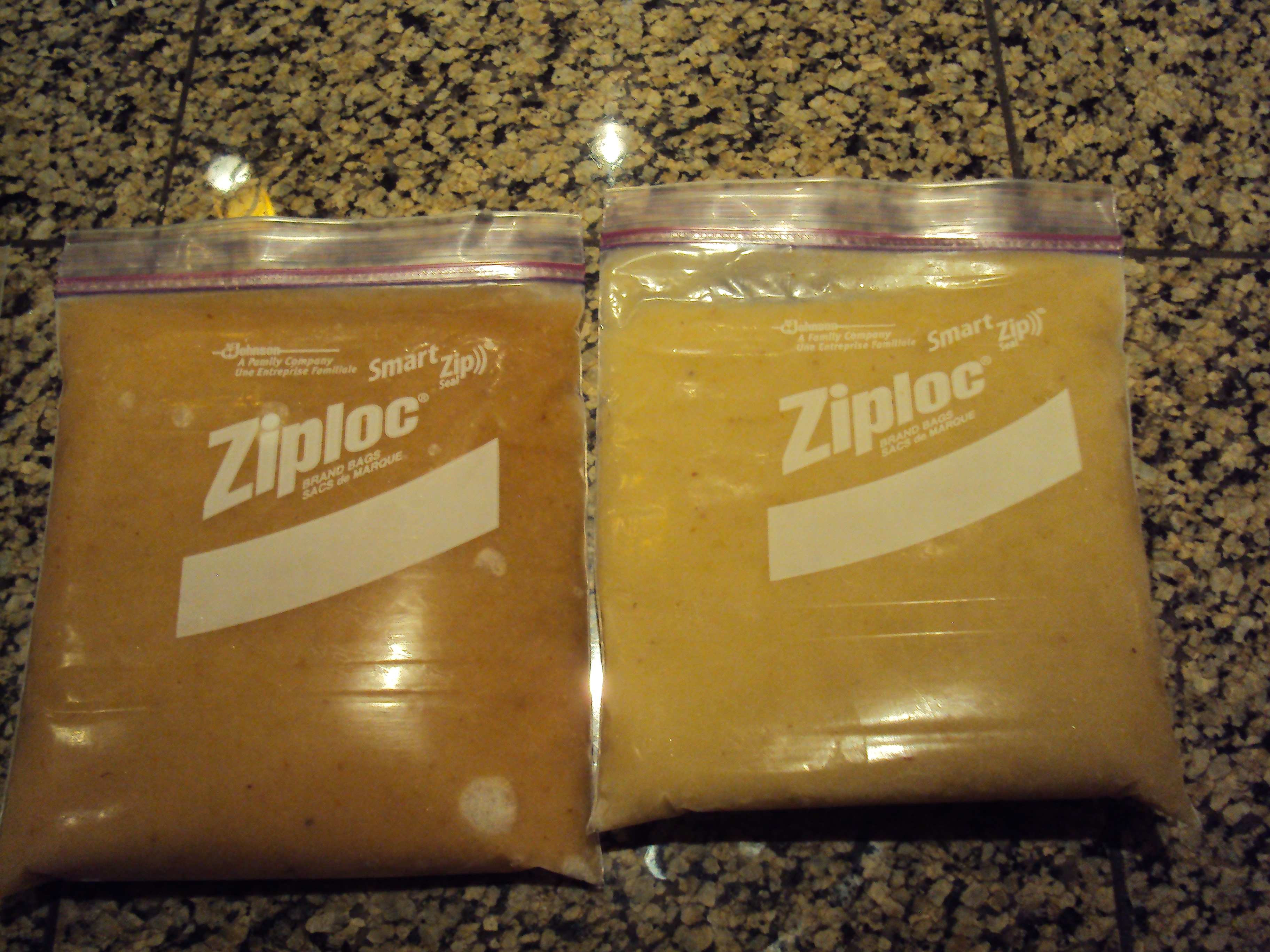 Nevertheless, these obsessive compulsive disorders have been known to have all manner of permutations. I take gardening. Some Veterans are anal purists like me and prefer their endeavors have identifiable characteristics. The flavor is radically different when condensed. Here are an example using apples. The bag on the left is exclusively Fuji towards the back of the orchard whereas on the right it is 100% pure, unadulterated Gravenstein applesauce from a tree with a generally good southern exposure in the waning days of summer.