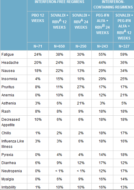 One thing’s for sure. We’re going to wait a long time for the VA to get Sovaldi on the shelves. Vets are not worth $120K worth of pills no matter how many medals they have. What is of note is the nature of the side effects noted so far in the Gilead Sofosbuvir early trials. Adding in the latest trials, there seems to be much ado about nothing for those of us in the Genotype 2 and 3 classes. They aren’t going to hose us with Interferon again at any rate. Here’s the skinny.