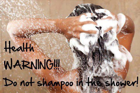 DO NOT wash your hair in the shower!! It’s so good to finally get a health warning that is useful!!! IT INVOLVES THE SHAMPOO WHEN IT RUNS DOWN YOUR BODY WHEN YOU SHOWER WITH IT. WARNING TO US ALL!!! Shampoo Warning! I don’t know WHY I didn’t figure this out sooner! I used to shampoo in the shower! When I wash my hair, the shampoo runs down my whole body, and printed very clearly on the shampoo label is this warning, “FOR EXTRA BODY AND VOLUME.” No wonder I have been gaining weight! Well! I got rid of that shampoo and I am going to start showering with Dawn Dishwashing Soap. It’s label reads, “DISSOLVES FAT THAT IS OTHERWISE DIFFICULT TO REMOVE.” Problem solved!