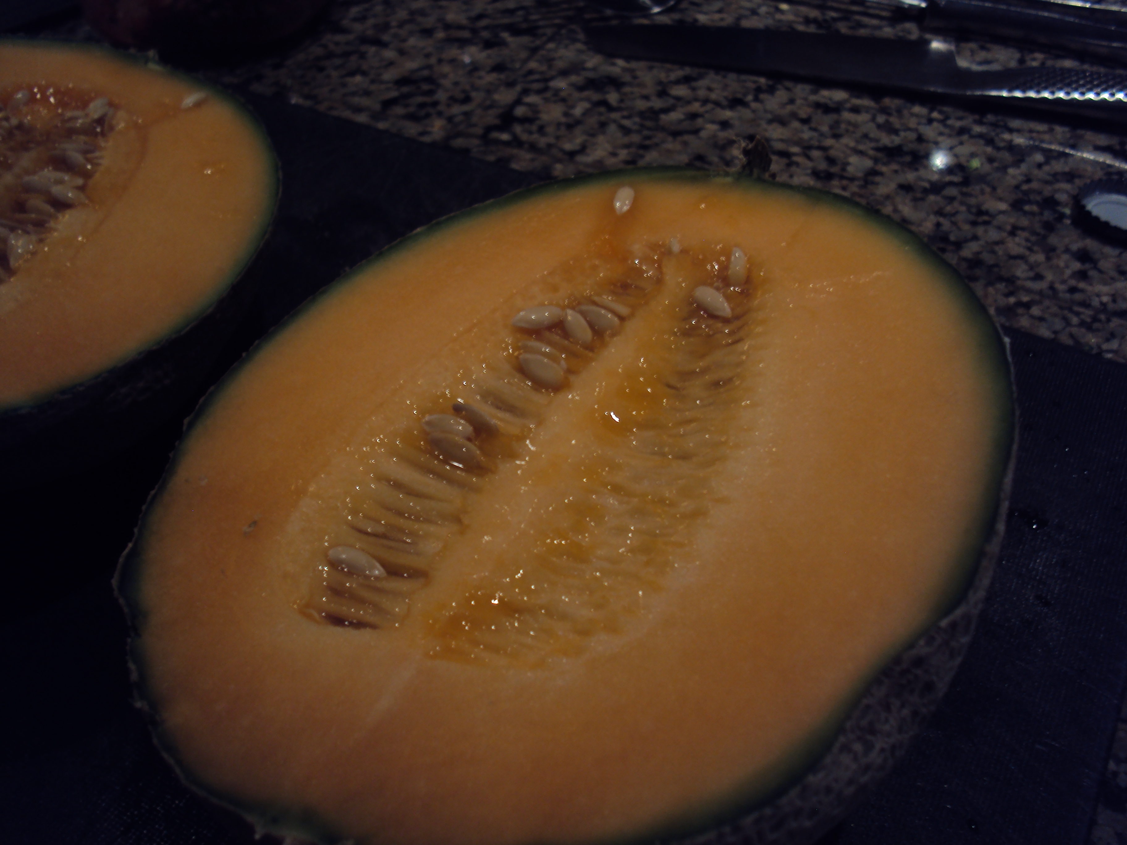 Cupcake immediately pointed out the little one I had hit with the knife that got pushed out when I cut it in half. And yes, it did look like it was boldly attempting to go where Alpha seeds go in desperation to exit the melon and seek a new home. Why, I had no idea. She proceeded to explain about the birds and the bees and how the Alpha sperm swims faster and more surely and arrives at the egg first. This is why the human race always improves and each generation is more intelligent than the preceding one. I tried to fit that into the context of the Veterans Administration and decided not to go there that evening.