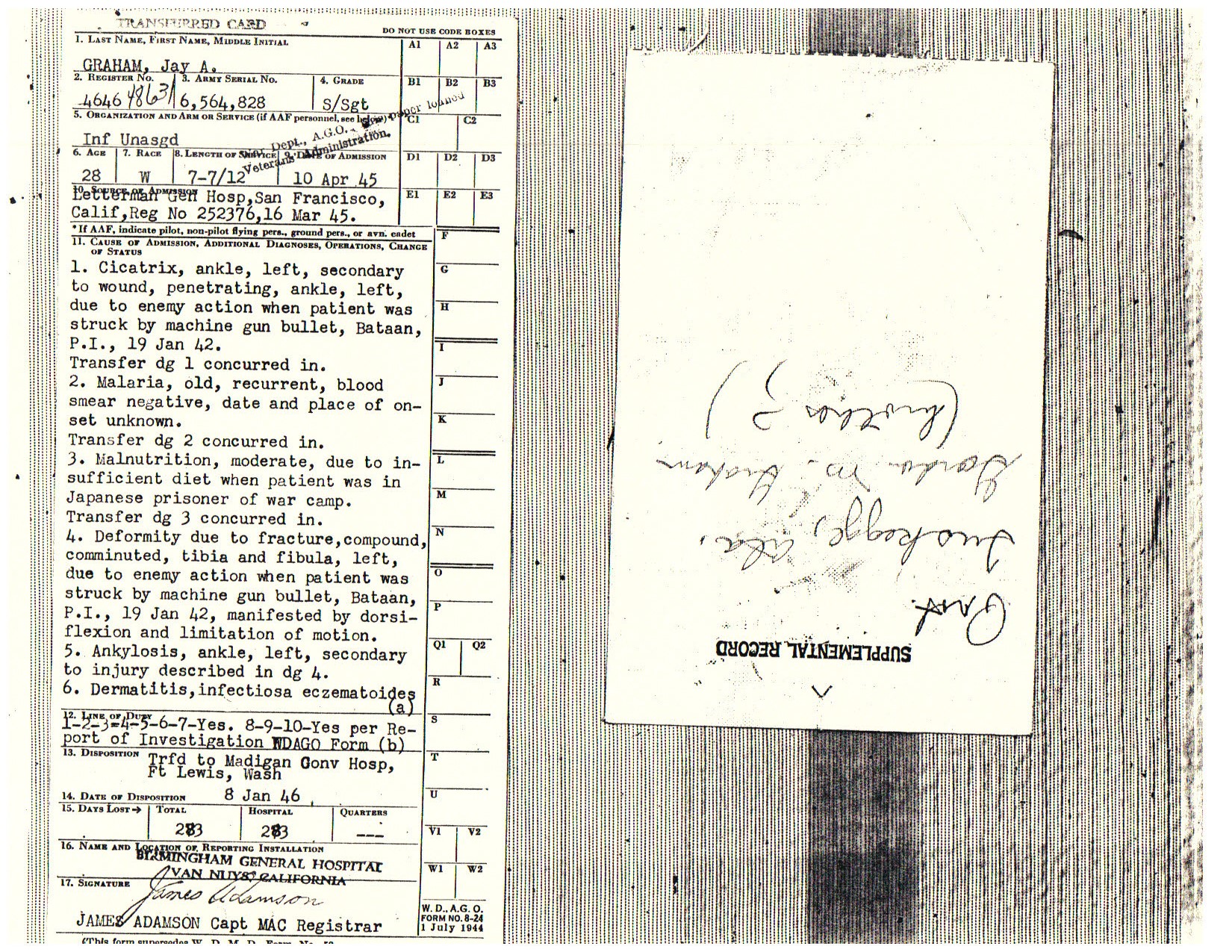 How did you get that WWII document when most of them were supposedly destroyed in the 1973 fire? I am still trying to locate my Dad’s documents where he was pulled out of the theater of operations in Italy after being captured on Nov. 08, 1942 during his parachute jump during the initial morning of Operation Torch. According to the Geneva convention, any released personnel had to be removed from the Theater. My Dad and everyone on his plane were pulled and sent back to the States. I am trying to prove that he was considered a POW during WWII. I have letters from his Lt. showing where he was injured in the jump and notices from the Red Cross of him being located. There is also a book written call Bailout over North Africa. that mentions him on the plane’s roster. The VA says BS.