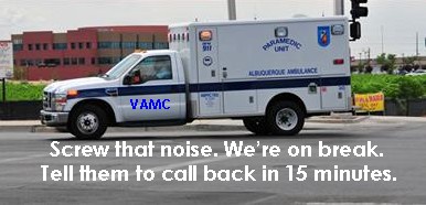 And now we have Vets dying in hospitals waiting for an ambulance to cart them 500 yards to an emergency room. Perhaps it is time we employed Vets to do this. There is no 911 on a battlefield. When you get clobbered by ordnance, your buddies don’t all gather ’round singing Kumbaya and hold your hand saying “Relax. We called for a dustoff. They’ll be here in 30 minutes depending on hostile fire. Try breathing more slowly so you don’t bleed out.” You get proactive or you lose them. What set of rules, dreamed up by VHA, would permit everyone to sit around and wait 30 minutes for a meat wagon when they could throw him on a stretcher and have him in capable hands in less than five? This is what we are up against. The media has no idea of the depth of perfidy we have suffered for aeons and which continues to infest this system. Only at a VAMC could a Vet die waiting to be seen due to personnel following the book. I rest my case.