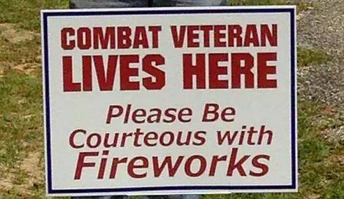 A spate of signs have begun appearing in front of homes of Veterans who suffer post traumatic stress around this time of year. How this plays out is not entirely clear. Are the neighborhood residents in the vicinity of the Veteran expected to curtail or forego festivities in order to assuage the affected few? How do we assimilate this new minority and still retain our identity as July 4th revelers?