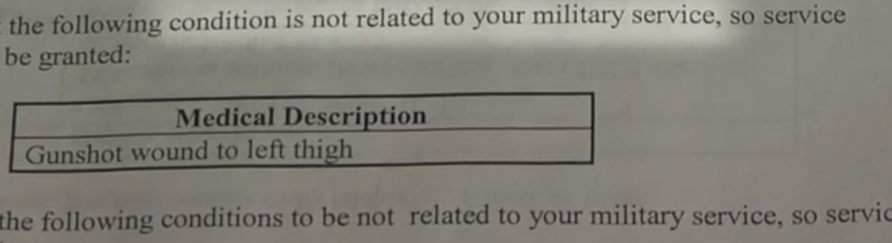 I have talked to vets who have had wounds that were obvious combat wounds denied as NSC. How do you get a bunch of metal fragments in your back, legs and butt if you were a soldier in Vietnam?