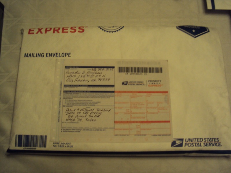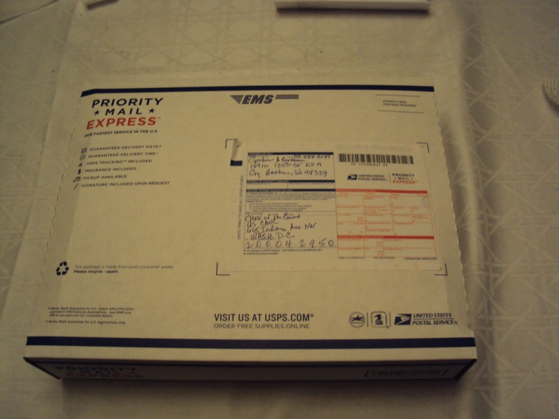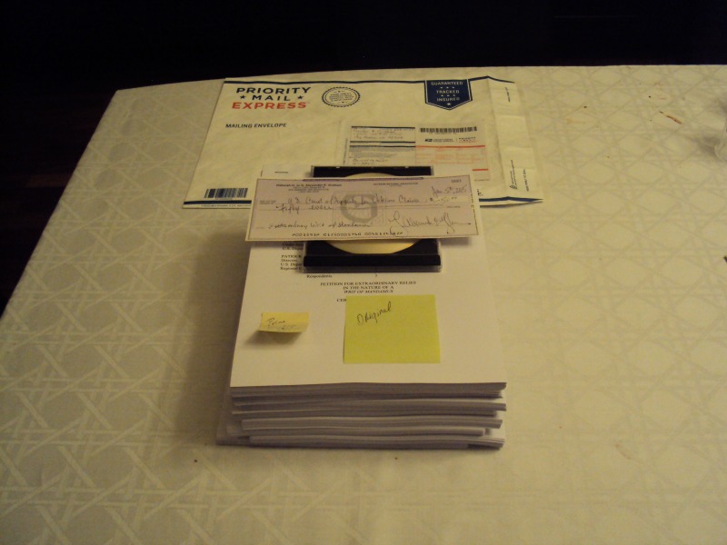 To give you an idea of how many trees died, it took three packs of paper and then some-probably about 1800 to create and send 1,568 to VA and the CAVC. The stack of paper to the CAVC was 4 inches tall without the CD. Each offering to the other 4 was 2″ for a total pile over 8 inches high. Total weight 18 lbs , 2.80 ounces. The Writ filing is 96 pages.  For $125 to get everyone on the commo link, there’s Mastercard. The look on their faces Thursday? Priceless.