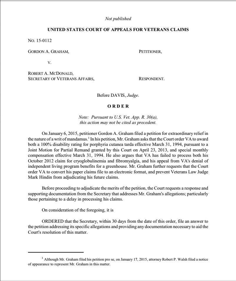 On the heels of Gene Groves’ debacle, we pray Davis assumes the mantle of umbrage that the BVA would have the temerity to pointedly ignore the mandate and order of the Court. This is the chord we seek to strike. Bold- but not brash.