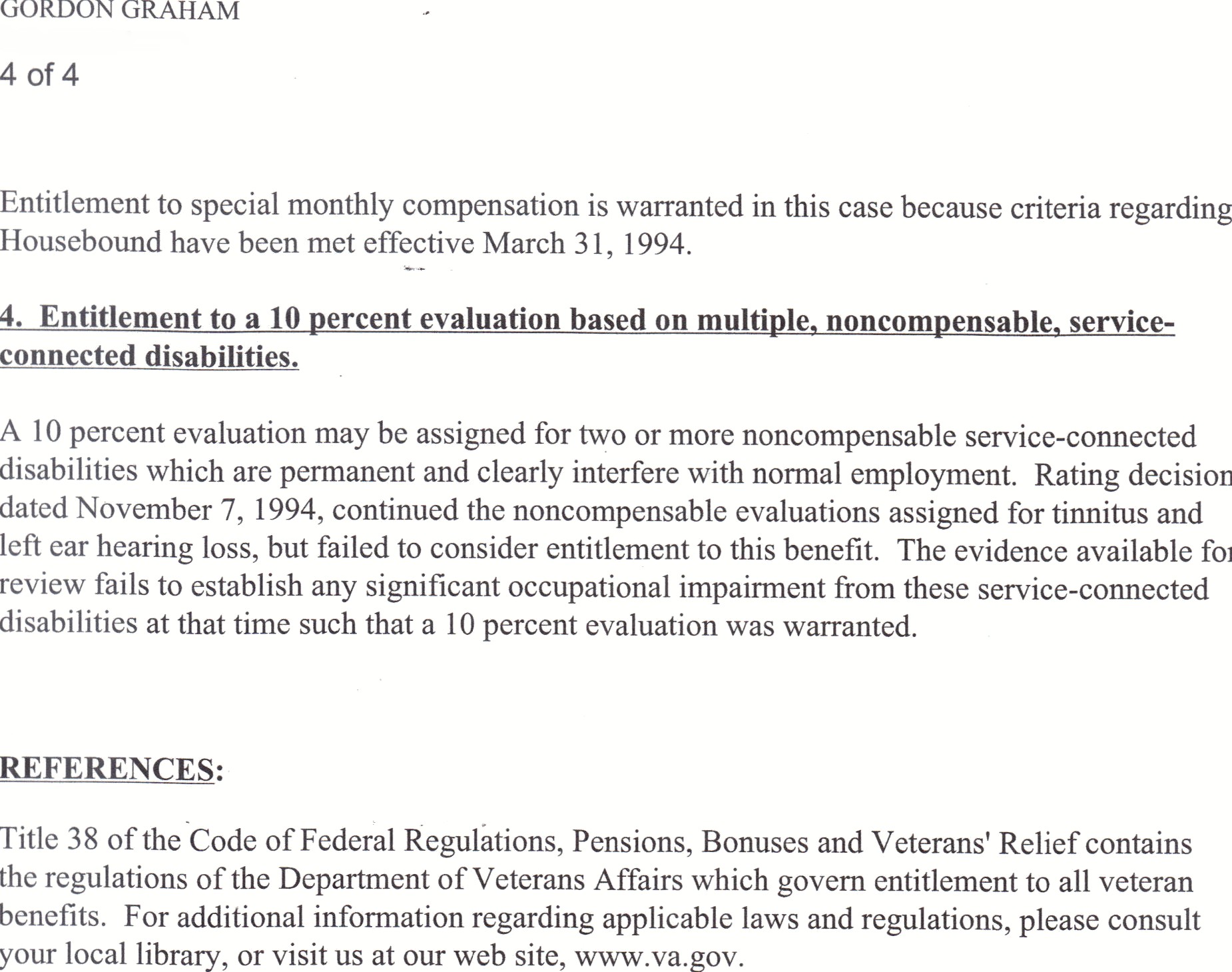 So much for the argument that their is no rating for total disability per se. Now, read 38 CFR §3.350 (f) (4). That’s what this is all about. VA must think I just stepped off the Mayflower and never heard of this.