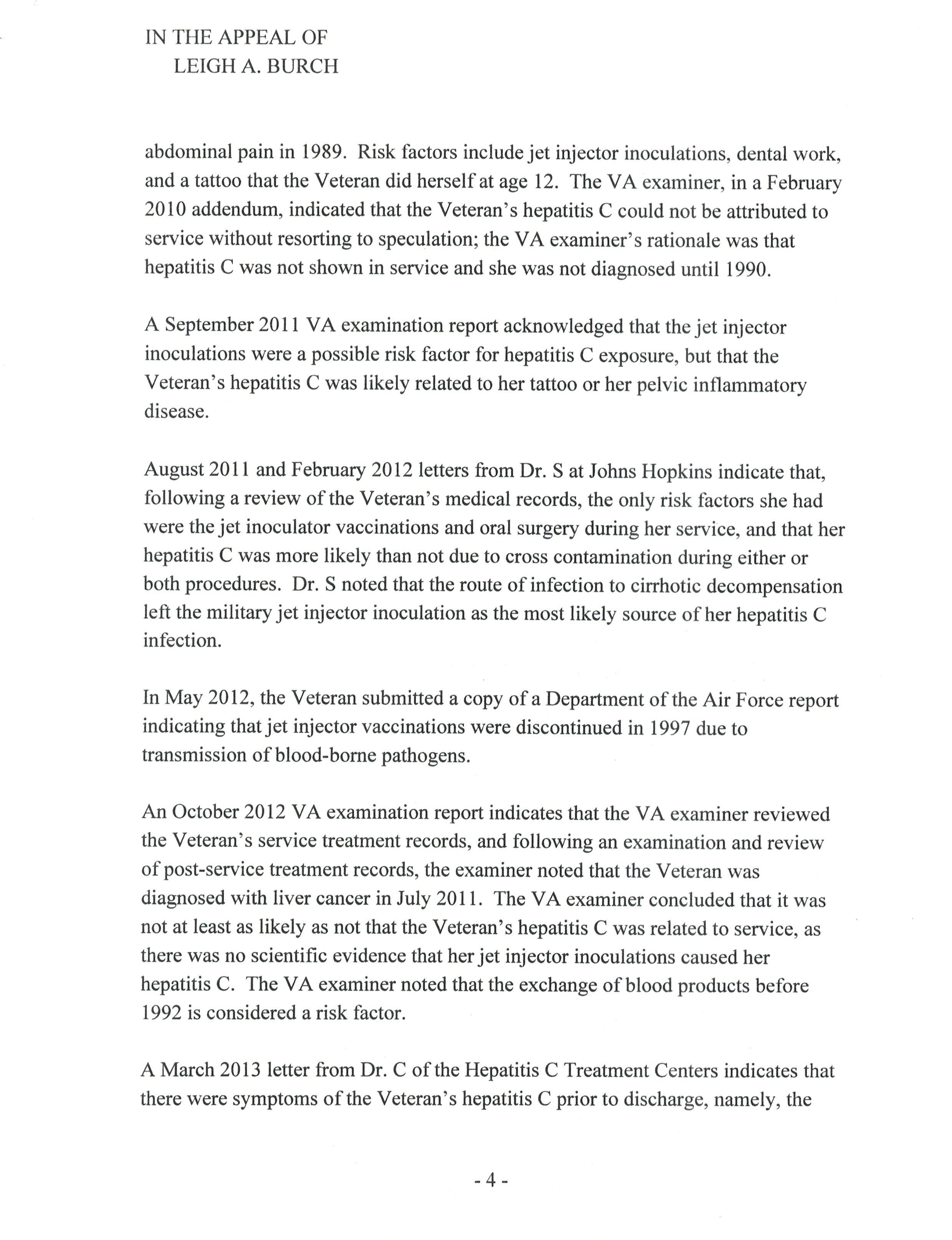 VA stated that her pelvic inflammatory disease was an indicator of promiscuous behavior. The VA examiner further opined it was not incurred in service. Alternately, a small India ink tattoo applied when she was 12 with a sewing needle was undoubtedly the cause of the HCV. Basically it was anything but a jetgun or having molars excavated with a dentist’s jackhammer.