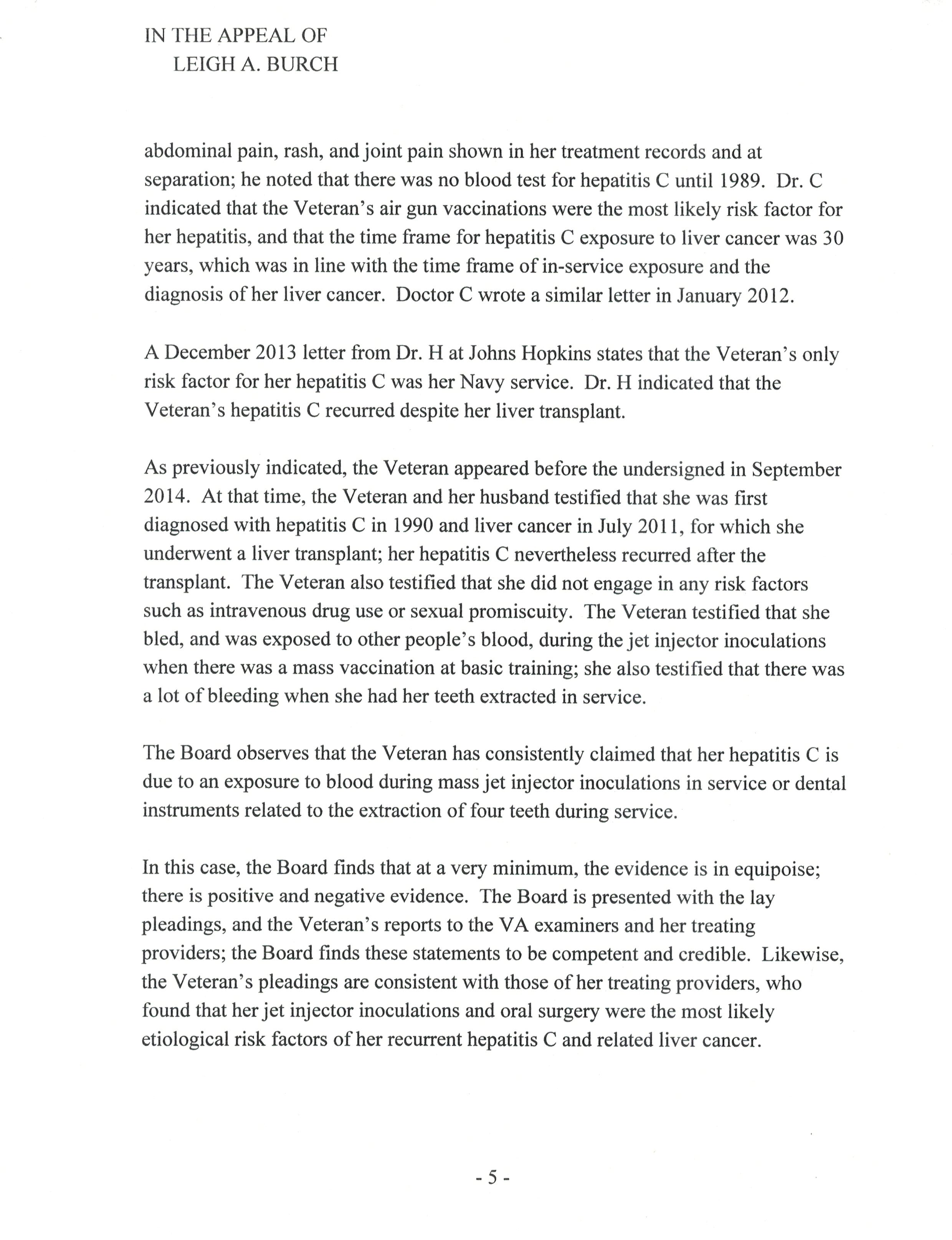 VA skated on this right up to Paul and Leigh’s ultimate win. They’ve been through a few boxes of kleenex and some long nights. I expect she’ll get a 100% P&T for the Hep alone. Being post-transplant, I can also see she’ll probably (or should) get SMC S for being substantially housebound. When you eat immune suppressors to prevent rejection of an organ, it leaves you open to every bug coming down the pike. Going out in public is taking a risk few would consider prudent.