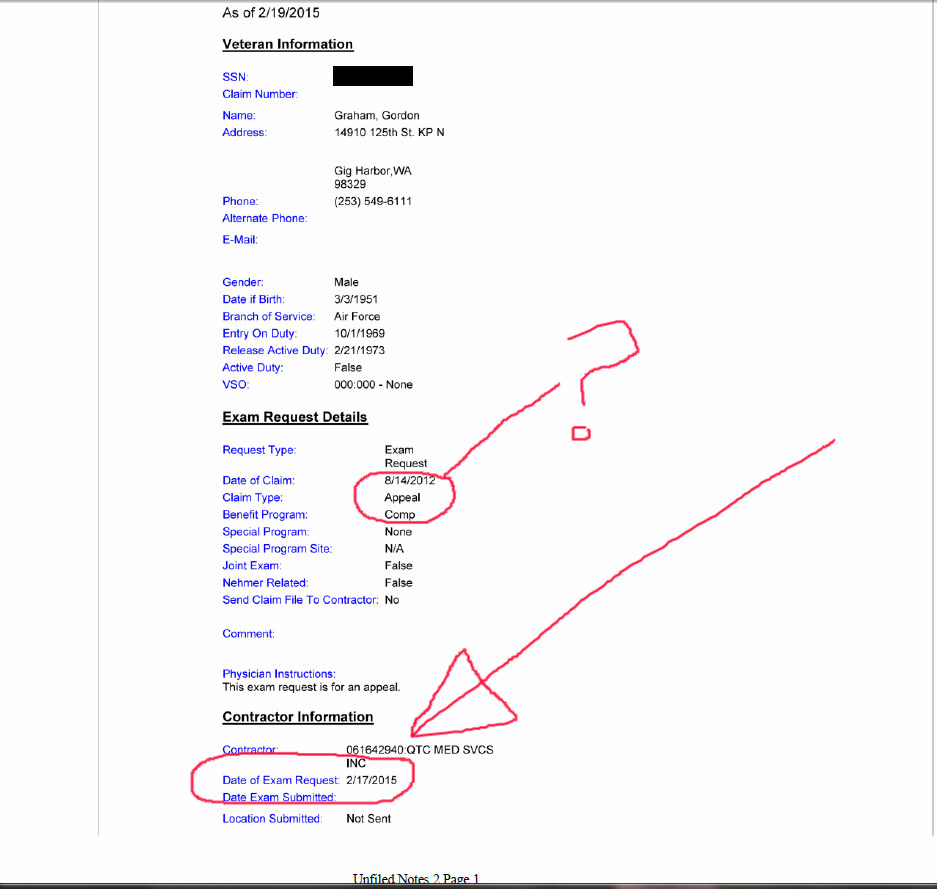 Now for the icing. If Ms. Lofgren can be believed, it just so happens that the Tacoma QTC was contacted to set up a compensation and pension examination that very same auspicious February 17th I was remarking on above. The obvious fingerprint on the bullet ensconced in the gun now has a name. If the claim is still waiting to be adjudicated as described in XVIII, how can it be that it is an appeal? Item XVIII also states this claim was filed on October 2, 2012 yet the DRO transmitted it to QTC as an appeal with an effective date of August 12, 2012. This is like the immortal Traffic Song of the sixties You can all join in: “Make your own date up if you want to/ Any old date that you think will do”.