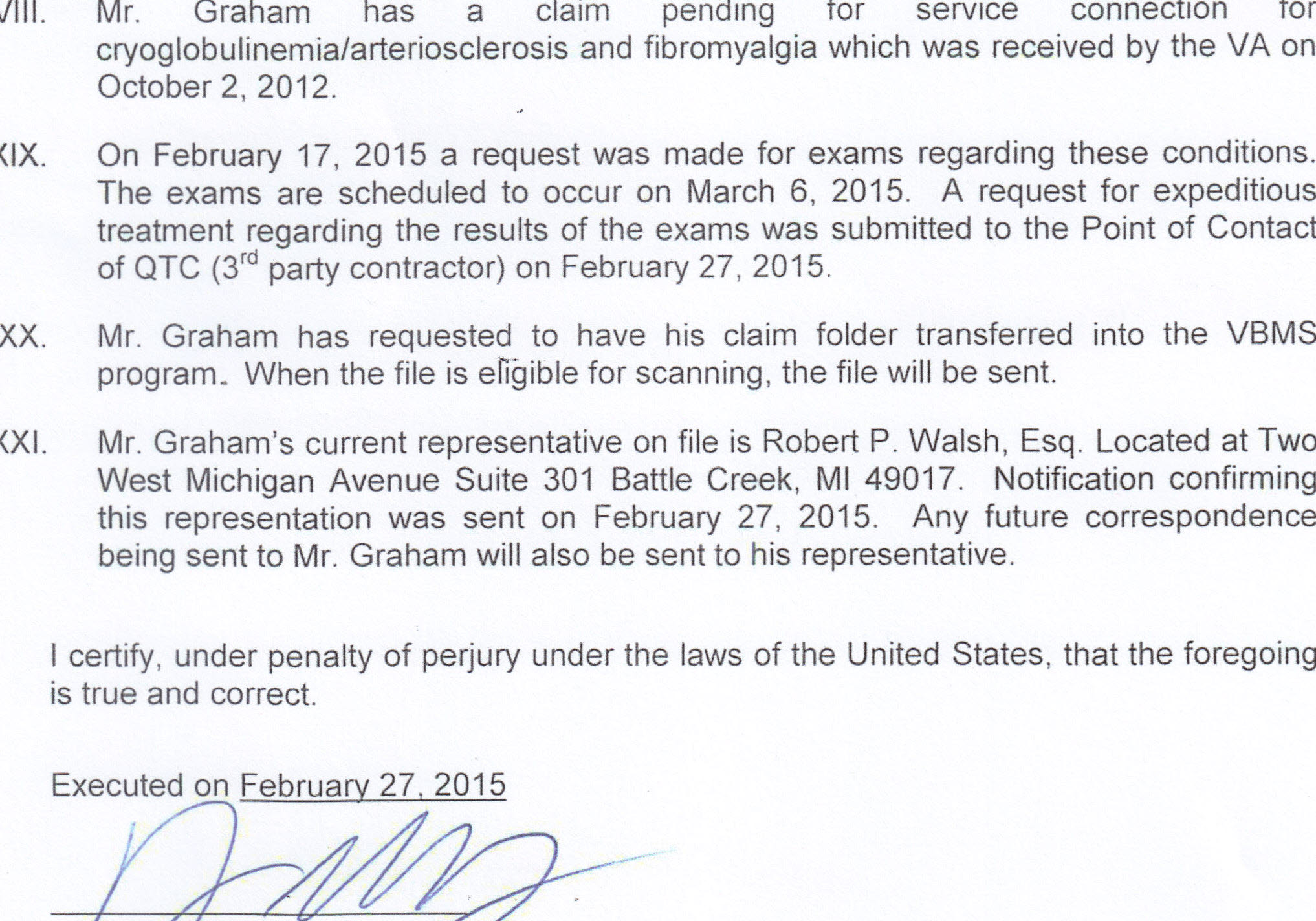 The first problem is that our observant VSCM was only recently assigned to the Seattle RO in April of 2014 so anything that transpired before her tenure there cannot be attested to under oath as she did on items II – V, XIV, XV and XVIII. Being generous, I would say her credibility has been severely compromised.