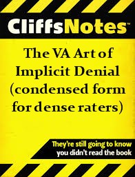 Pursuing the “idiot” scenario, it should be clear that Mr. Bond was going to want to see a clearcut denial for both claims filed in order to be more knowledgeable when constructing his NOD and subsequent argument. 38 CFR § 19.29 was the trip wire I ended up with when VA was caught fudging the evidence at the CAVC in #12-1980. I said it fell into 3.156(b) as evidence submitted in the course of the one year appeal period following denial. It’s immaterial which regulation was violated. The salient point is absent a real lawyer with a real American Juris Doctorate from a real law school, anything Mr. Bond did legally was automatically deficient and required far more introspection before calling in the dogs and pissing on the fire. Before I point out Judge Kasold’s flawed introspection of Mr. Bond’s plight, lets look at the recognized hallmarks that define an implicit denial.