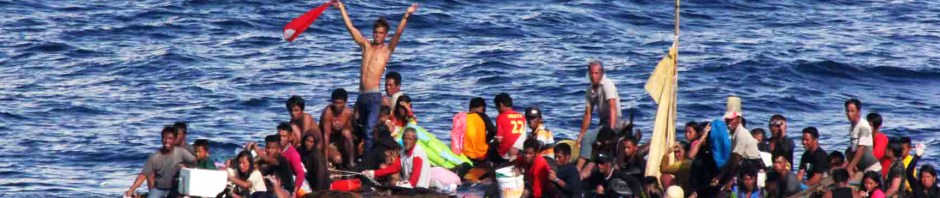 Bamboo rafts tied together? …. No propulsion….? Sounds like the boatpeople of Vietnam trying to get away from some BAD Dudes…. and they put them back on an Indonesian Naval Vessel? Probably gonna be couple folks turned into shark chum…..