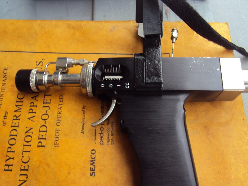Mark replaced the hydraulic oil with the same recommended dot 3 fluid used in 1970. You think we’d violate the protocol of the chain of evidence? The tip was plugged up. We followed the manual’s procedure to clear it. The spare tip was clear and works as well. All the o rings were relubricated and the cylinders checked for residue. This was a straight up, top flight job. Any medical specialist familiar with the gun could autoclave it for the required time and feel comfortable inoculating anyone who walked in off the street followed by himself. The gun mechanism is not a sterile device. Just the “nostril” that holds the vaccine, the inter connected tubing and the “nostril” of the jetgun.