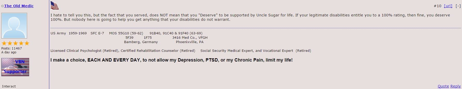 Old Medic is such a DIC….I really hate the way he answers some of the Vets.