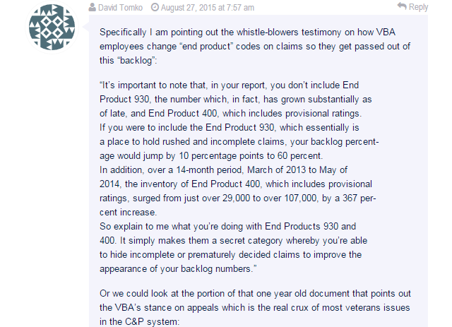 Over the years, I wondered how long hiding behind asknod.org would be necessary. When I ‘called Bob’ last September to rescue me, I actually pointed out my blog and a link to it in case he or his little people wanted to research a case study in how not to adjudicate a VA claim. Having a bully pulpit of sorts gives you name recognition-eventually. Today, after numerous hits from a VA Vantage Point article and a heads up from several observant members, I discovered one Mr. David Tomko had attached a link to the article about my good friend and neighbor Butch Long.