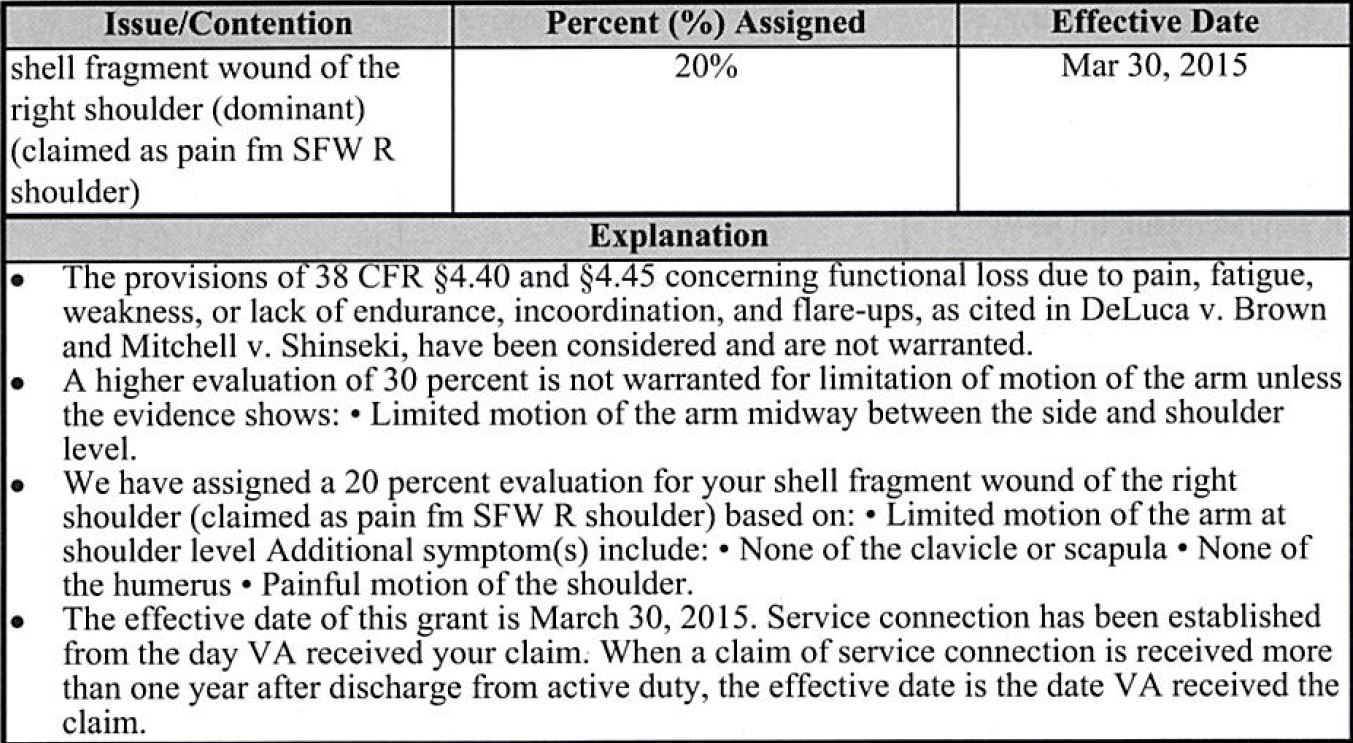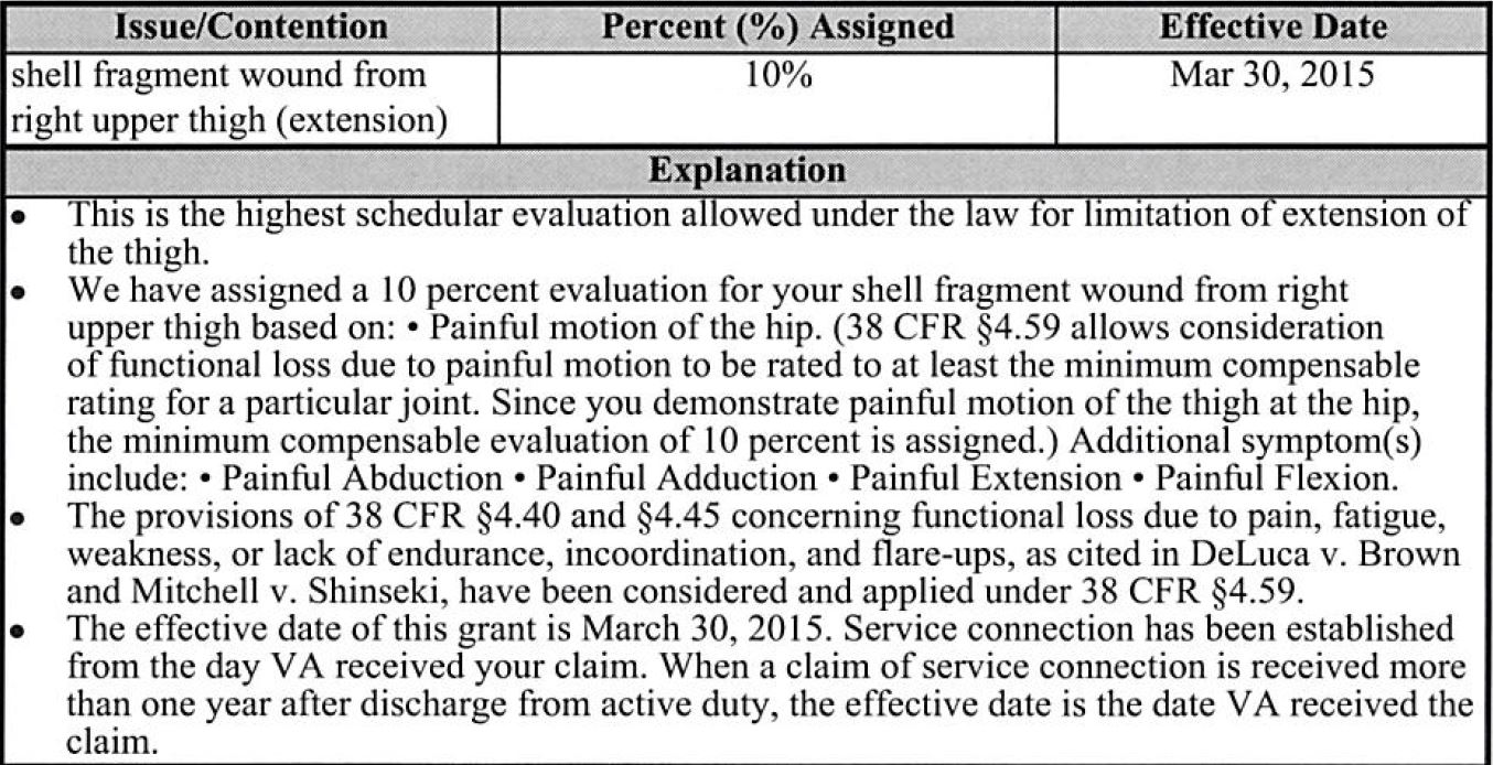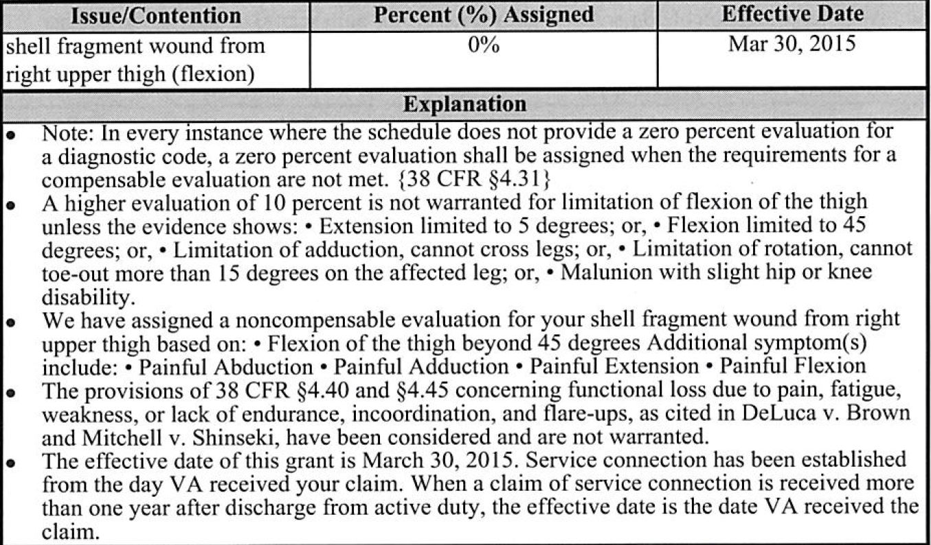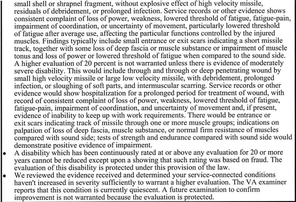 Brian contended he should have been rated higher for each muscle group the bullet traversed (2). He won that on appeal but then began the larger argument as to why he was not given the 30% when he filed in 1952. Thus you can see this appeal is a Clear and Unmistakable Error (CUE) claim-the absolute hardest to win of all.