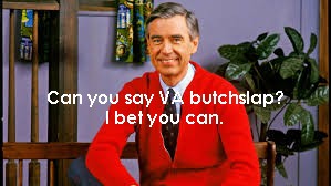 downloadI can almost hear Fred Rogers asking “Can you say Butchslap? Sure. I bet you can. Go ahead. Butchslap is what all your friends in the VA neighborhood like to do to show their appreciation for your honorable service to America. Isn’t that special? Welcome Home, Butch. We have your six. Nexxxxxt?”