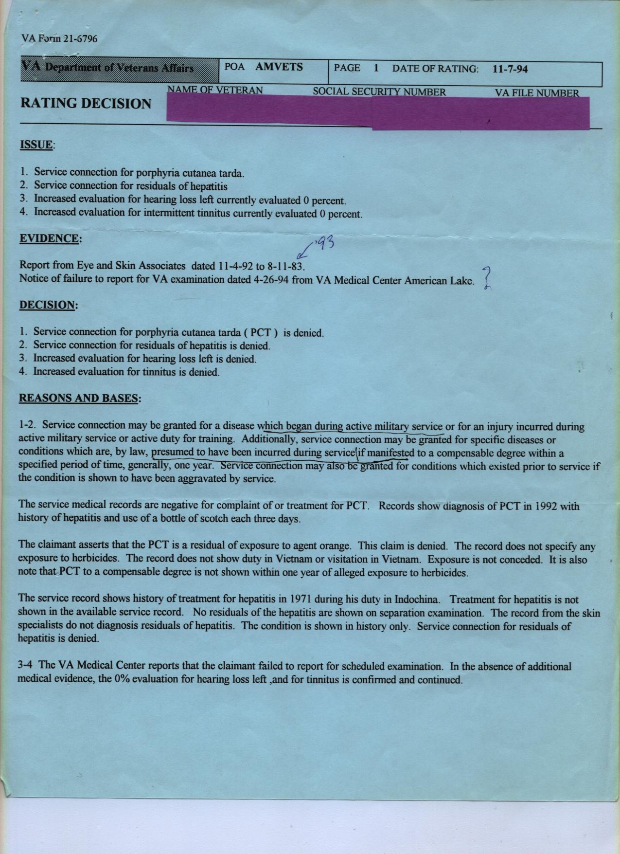 1. The criteria are met for a 30 percent rating for PCT scarring and skin manifestations. 38 U.S.C.A. §§ 1155, 5107 (West 2014); 38 C.F.R. §§ 3.102, 4.3, 4.118, Diagnostic Codes (DCs) 7354, 7815 (2015).
